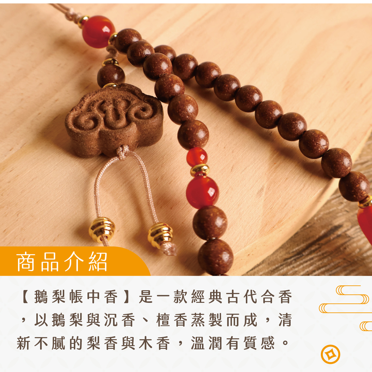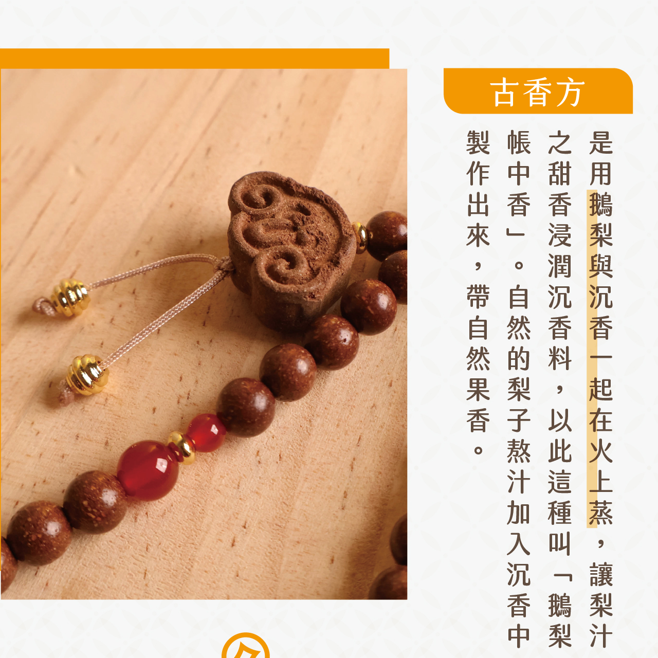 ,以鵝梨與沉香、檀香蒸製而成,帶