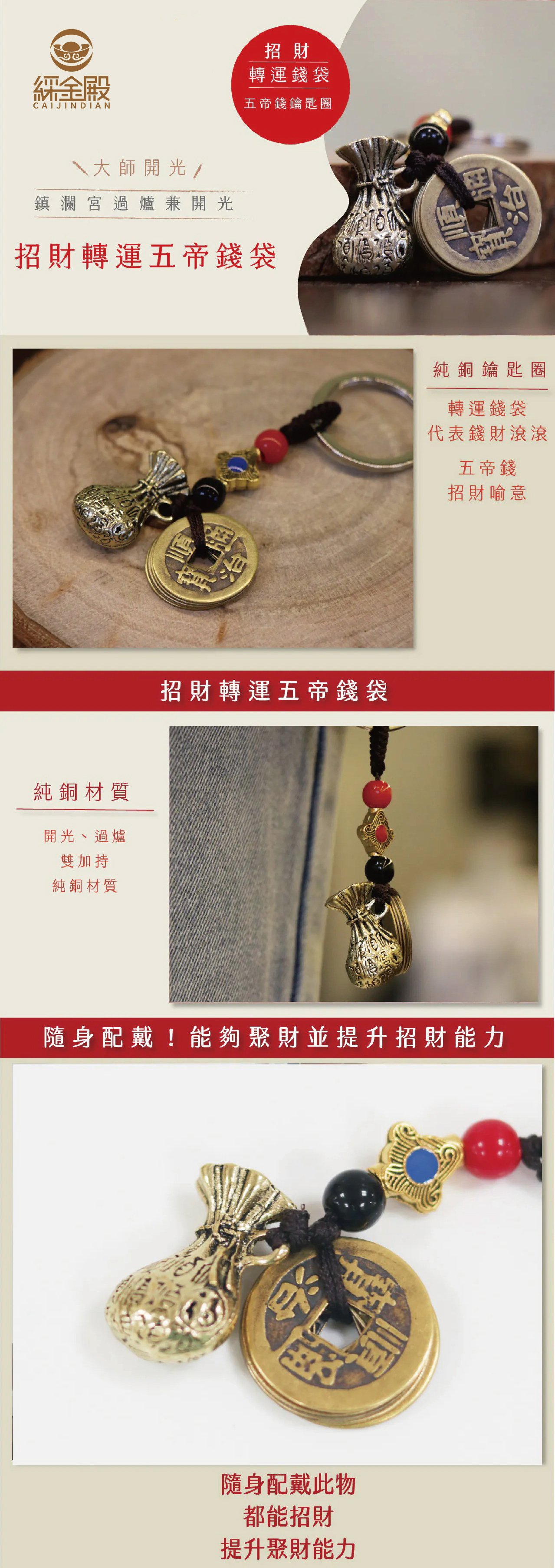 招財轉運五帝錢袋純銅吊飾|《含過爐》招財|避邪| 化煞|聚財【綵金殿】