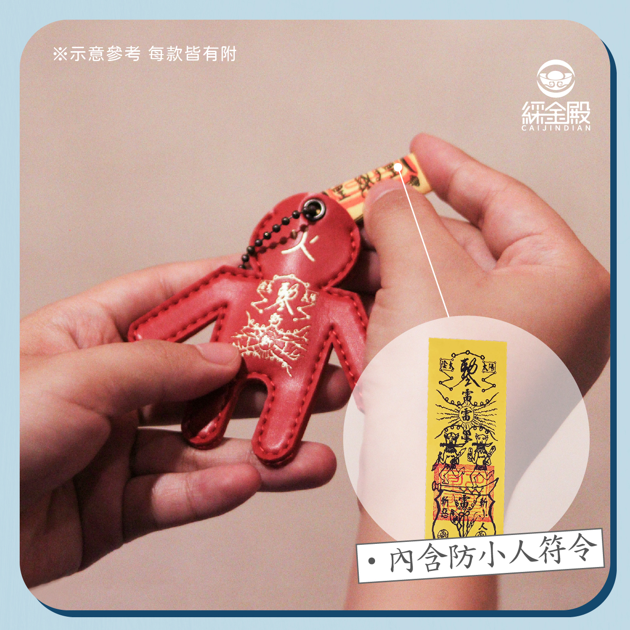 內附特別請法師開光後的防小人符令,並搭配過爐祈福的皮製御守。