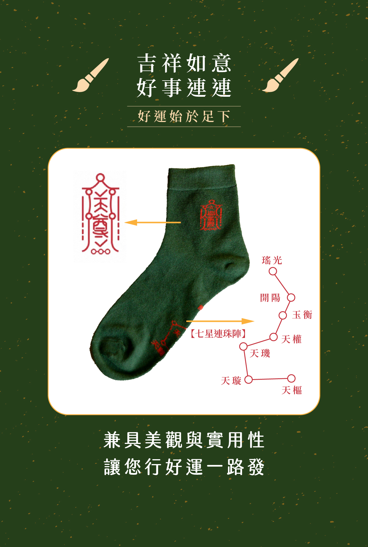 開運襪系列 - 學業襪|綠色|開智慧|襪子|七星連珠|事業升遷【綵金殿】
