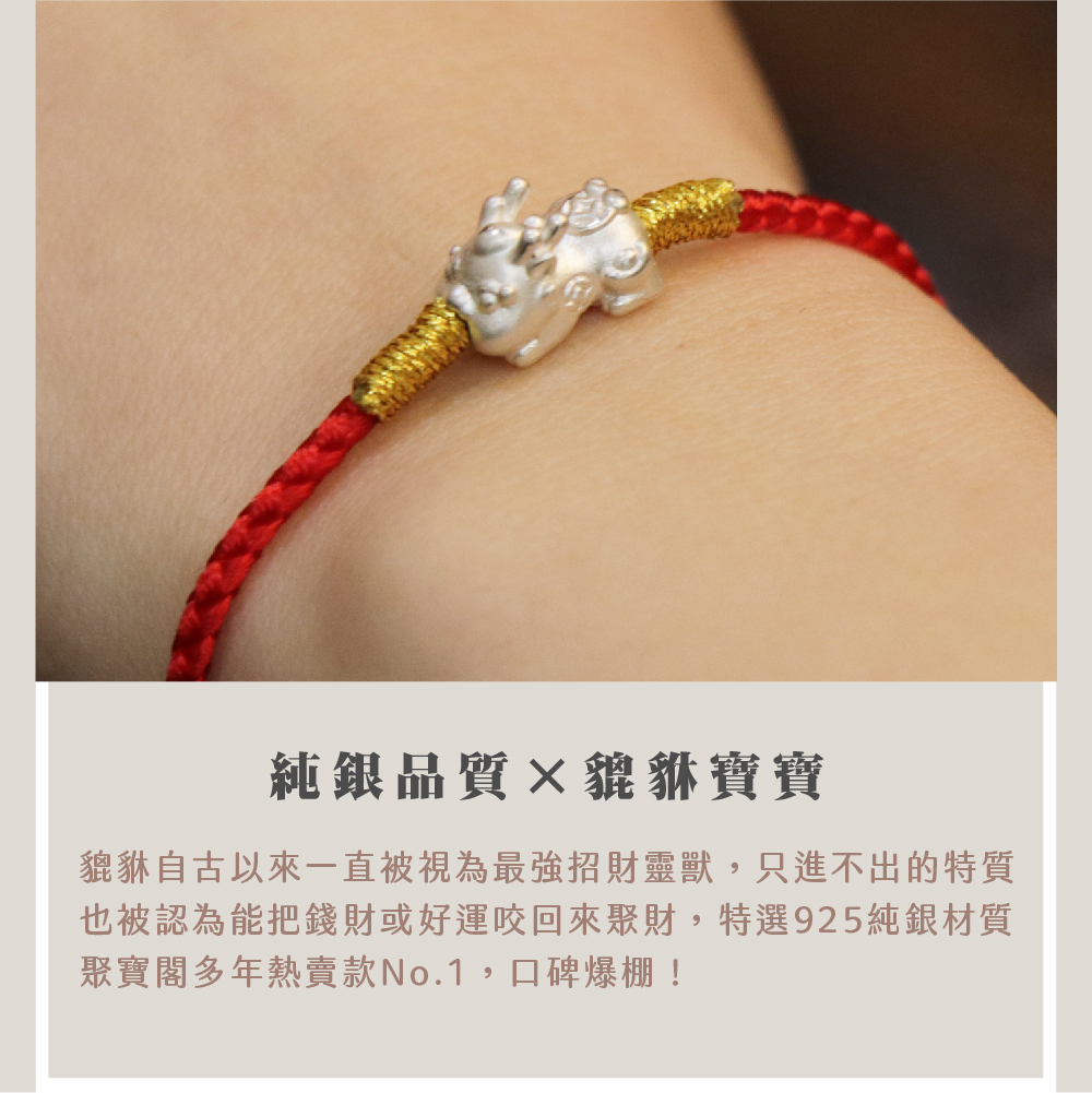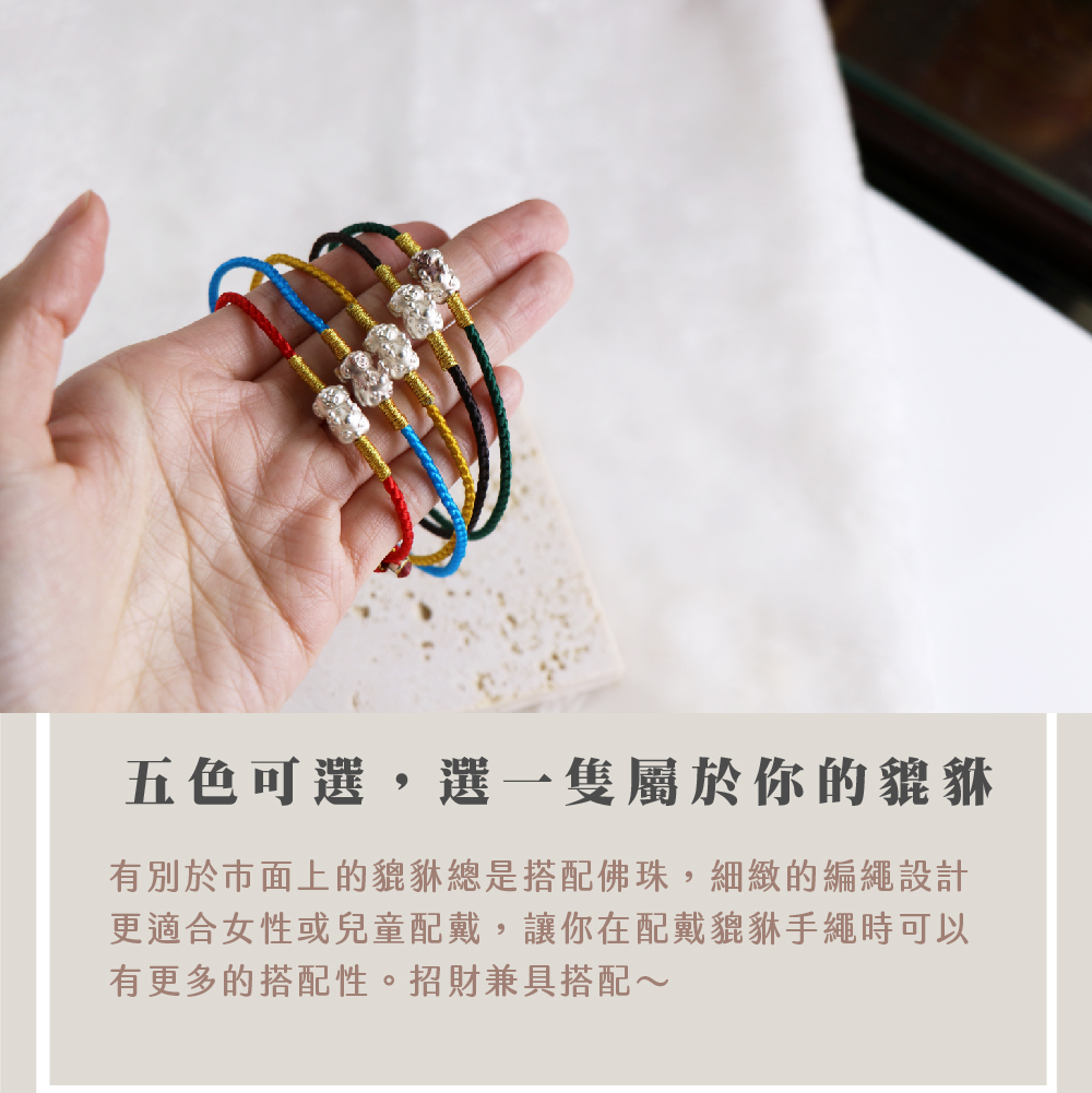 純銀貔貅寶寶開運手鍊-純紅色|五色可選|開光過爐雙加持|招財必備【綵金殿】