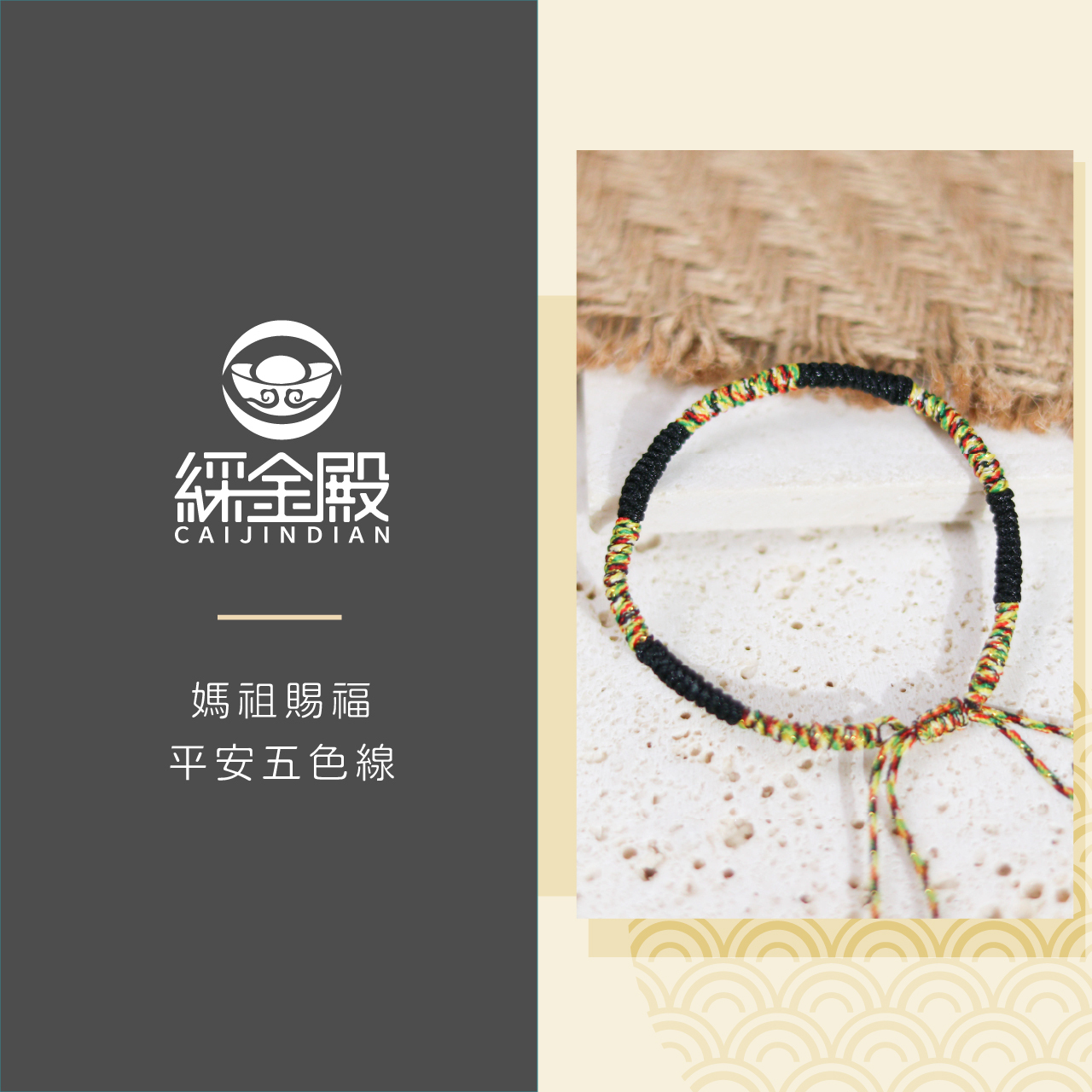 黑色-媽祖賜福平安五色線|《含過爐》|保平安 避邪擋煞【綵金殿】