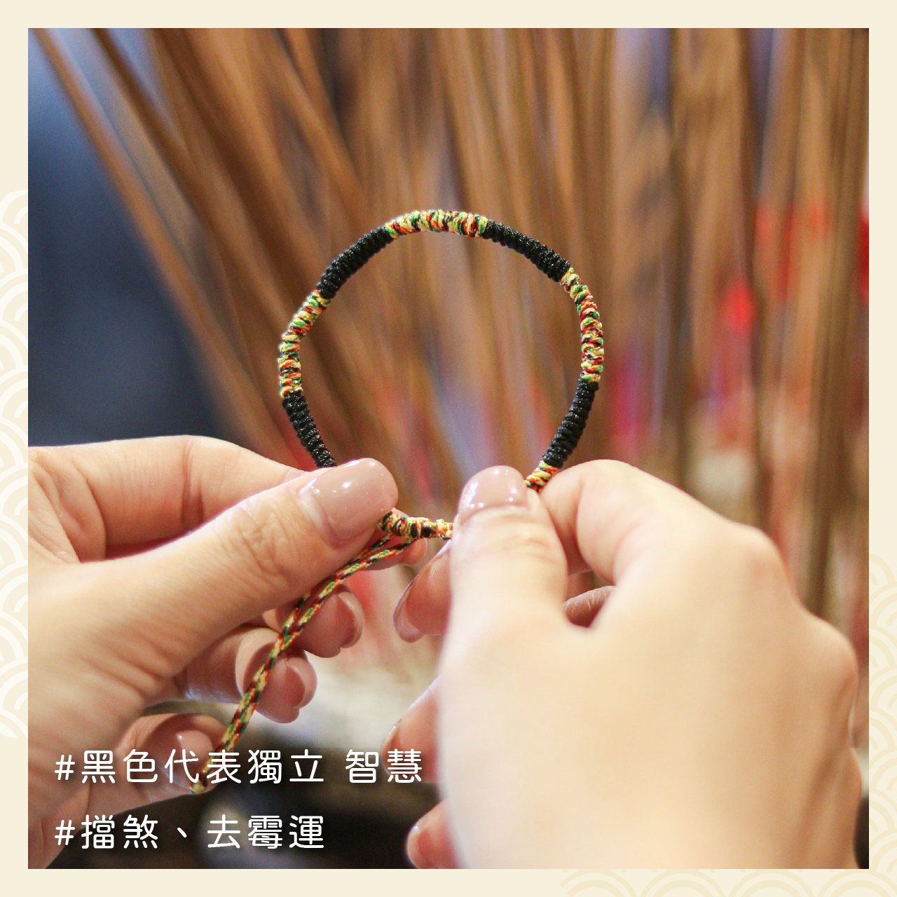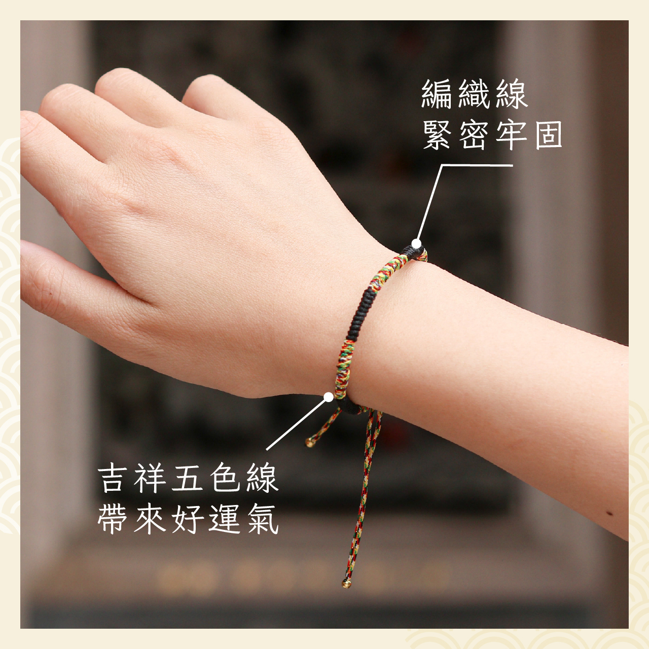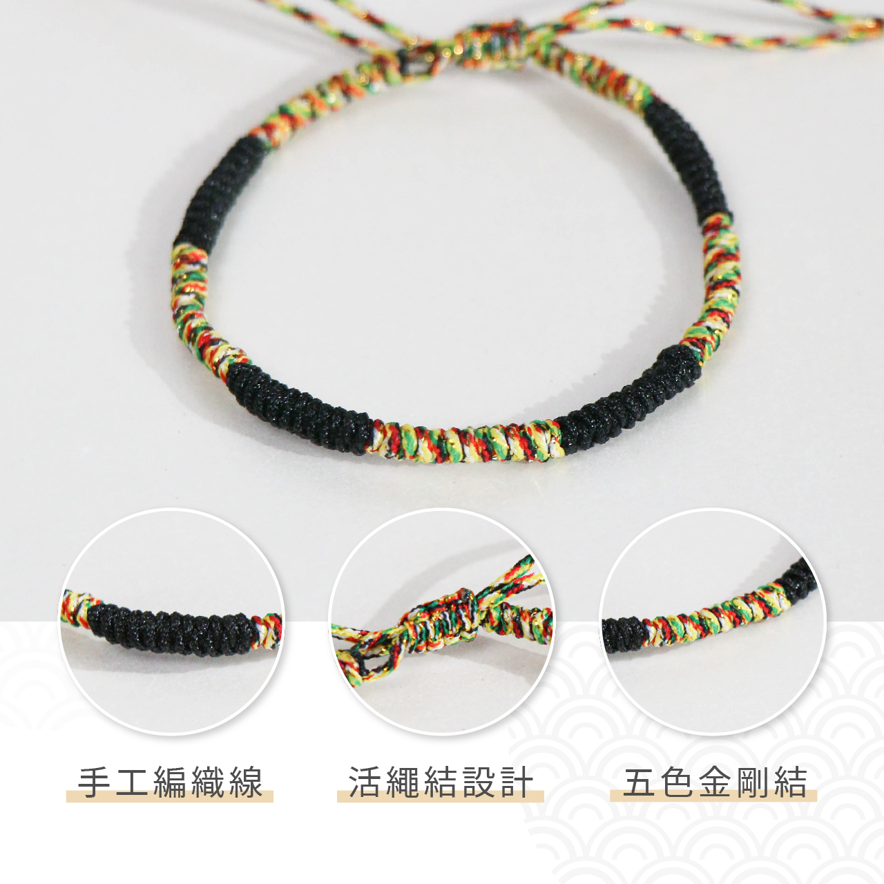 因五色線手繩為手工編織
