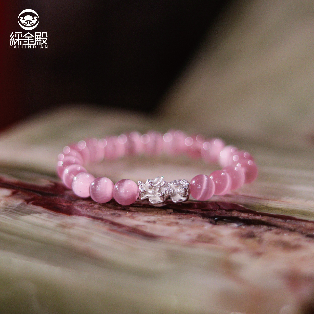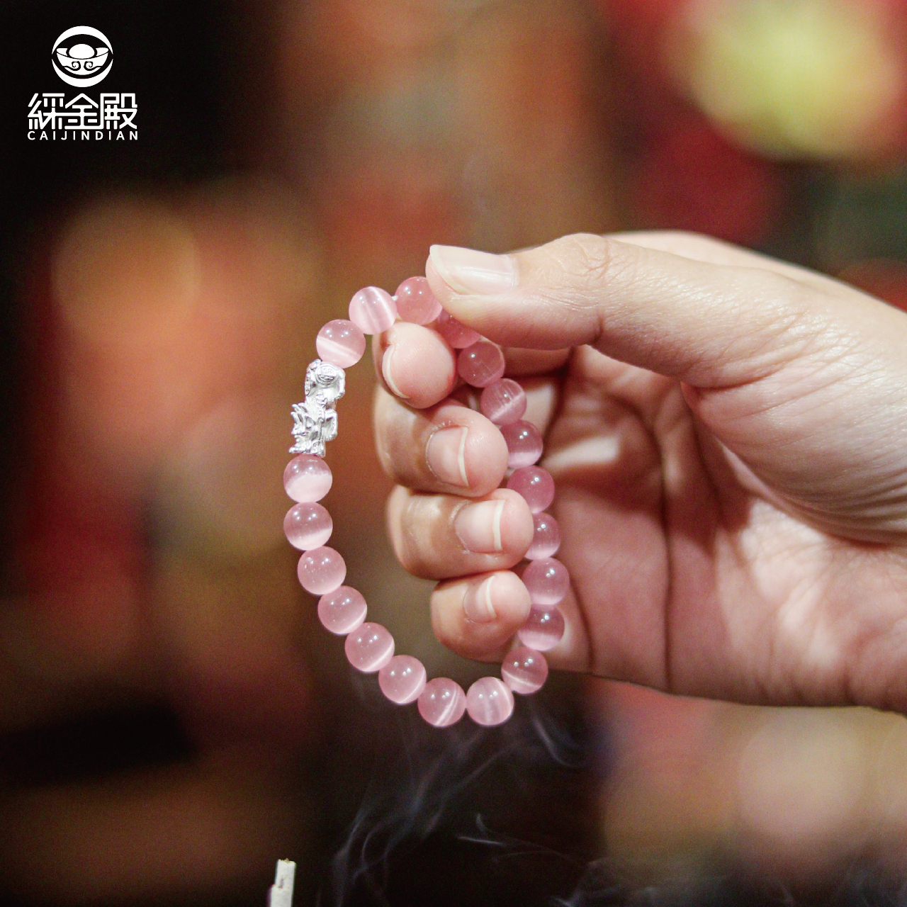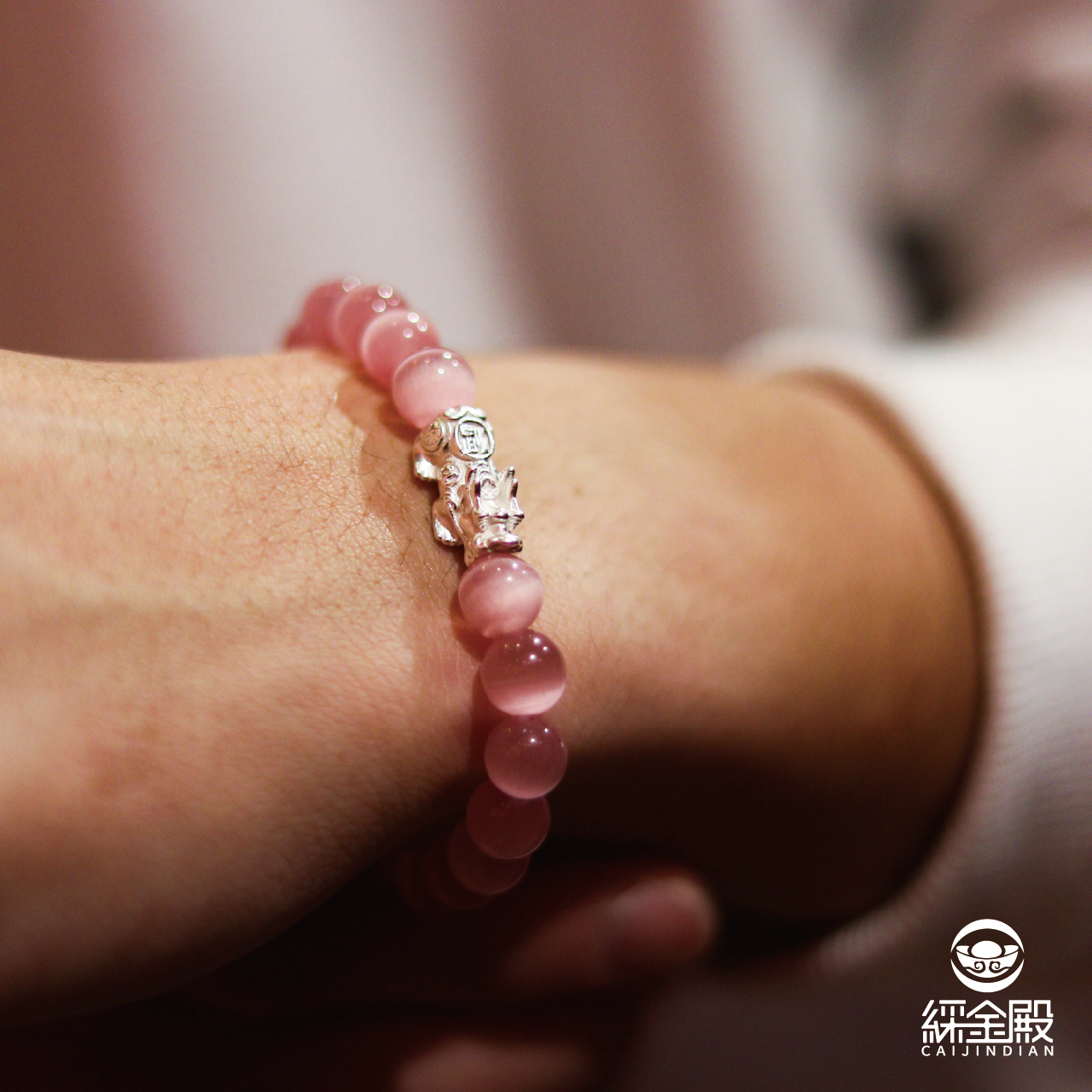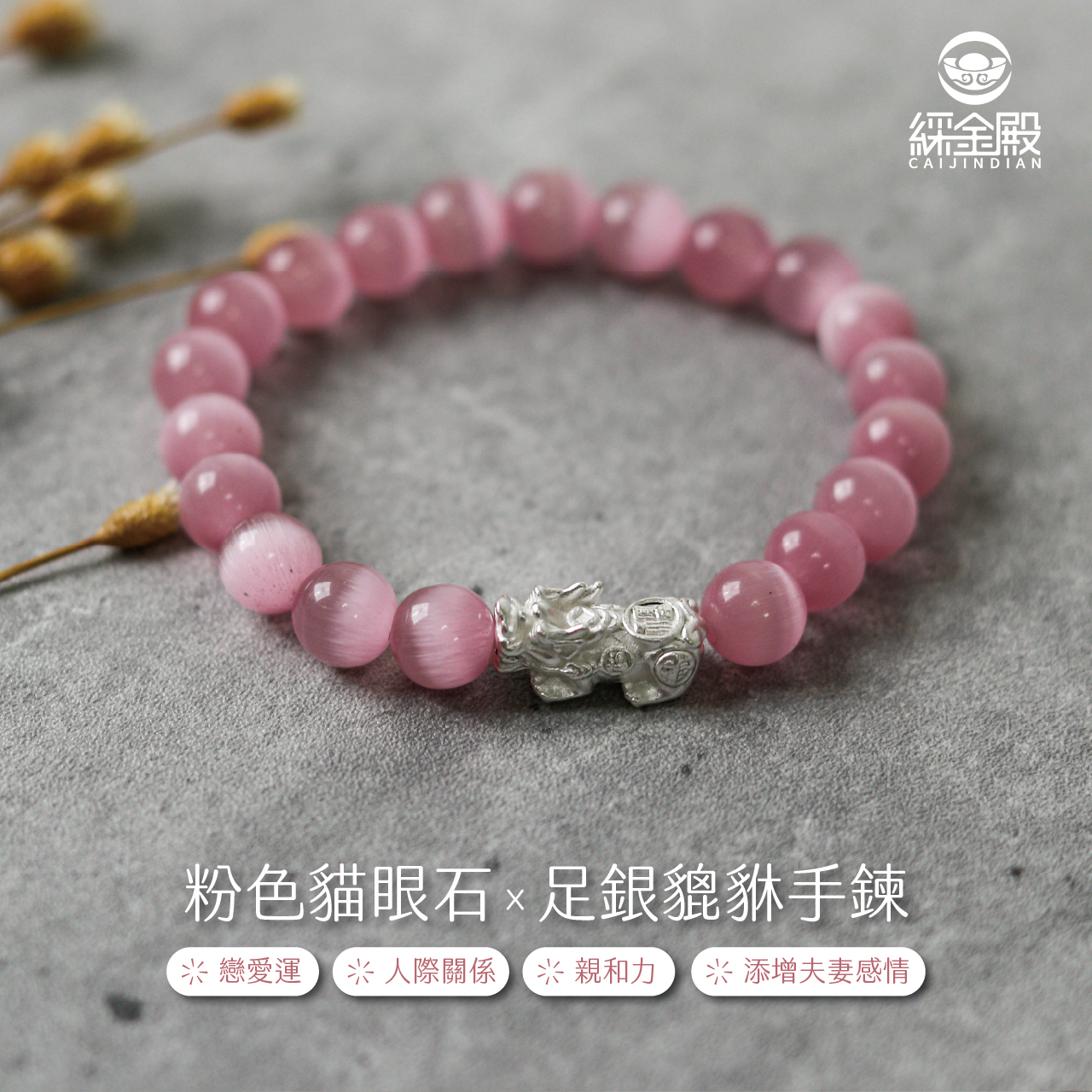 粉色貓眼石x純銀貔貅手鍊|戀愛運|添增夫妻感情 │ 貴人【綵金殿】