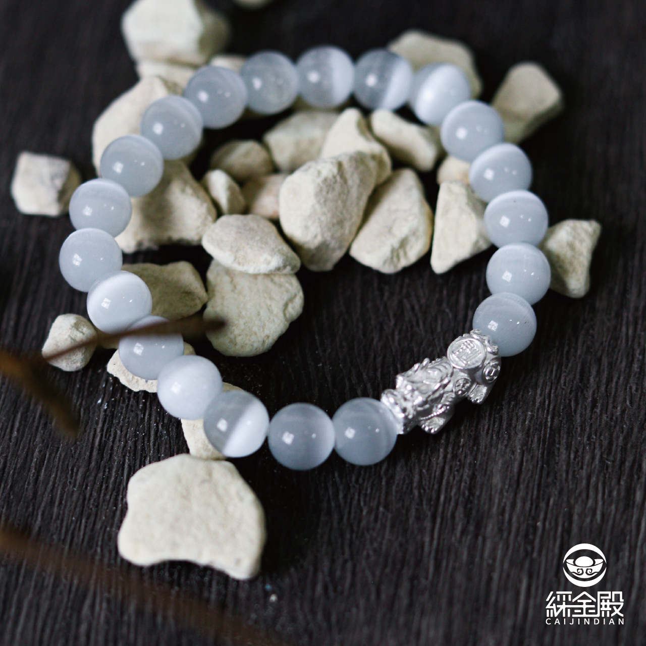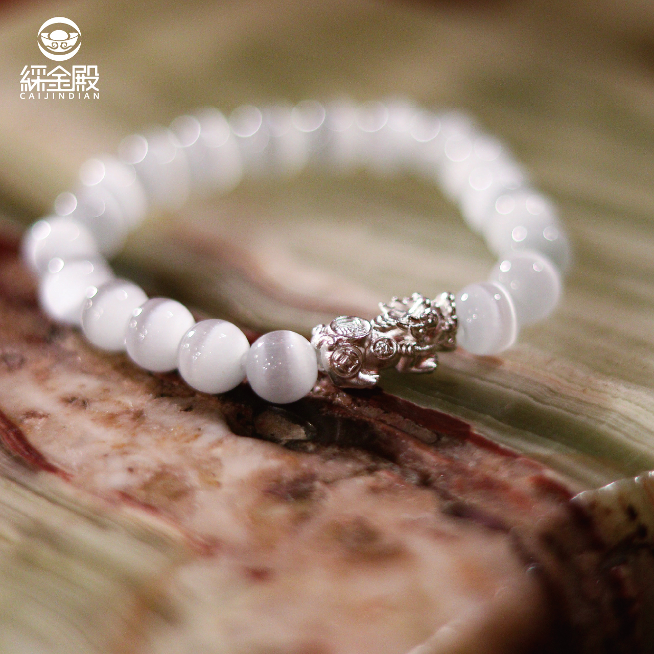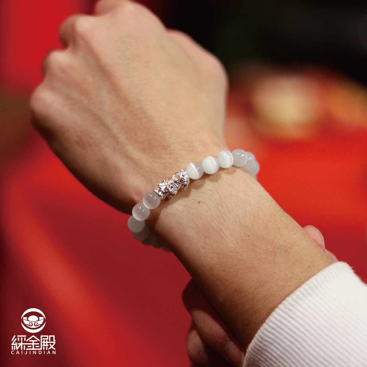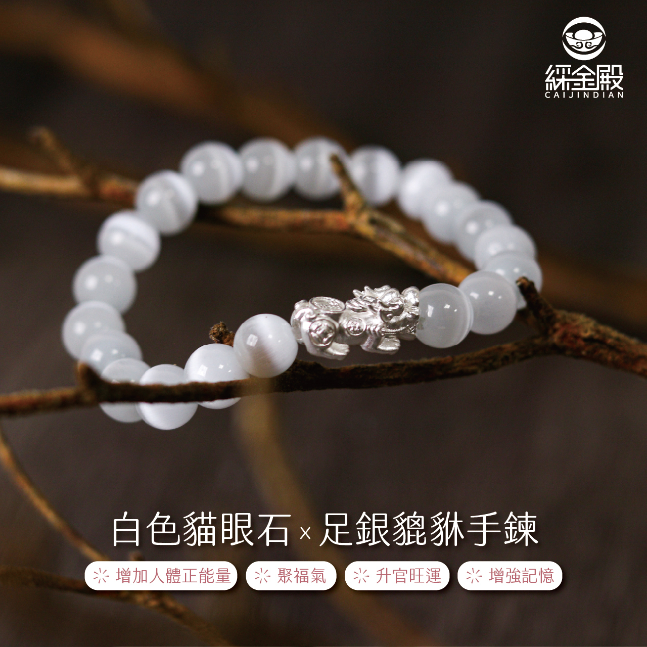 白色貓眼石x純銀貔貅手鍊|增加人體正能量|升官旺運【綵金殿】