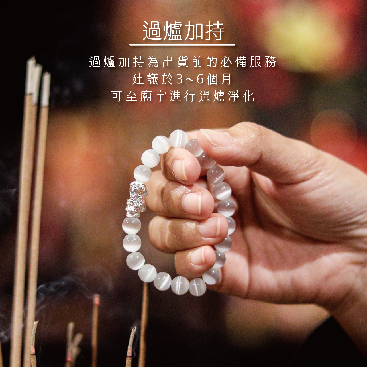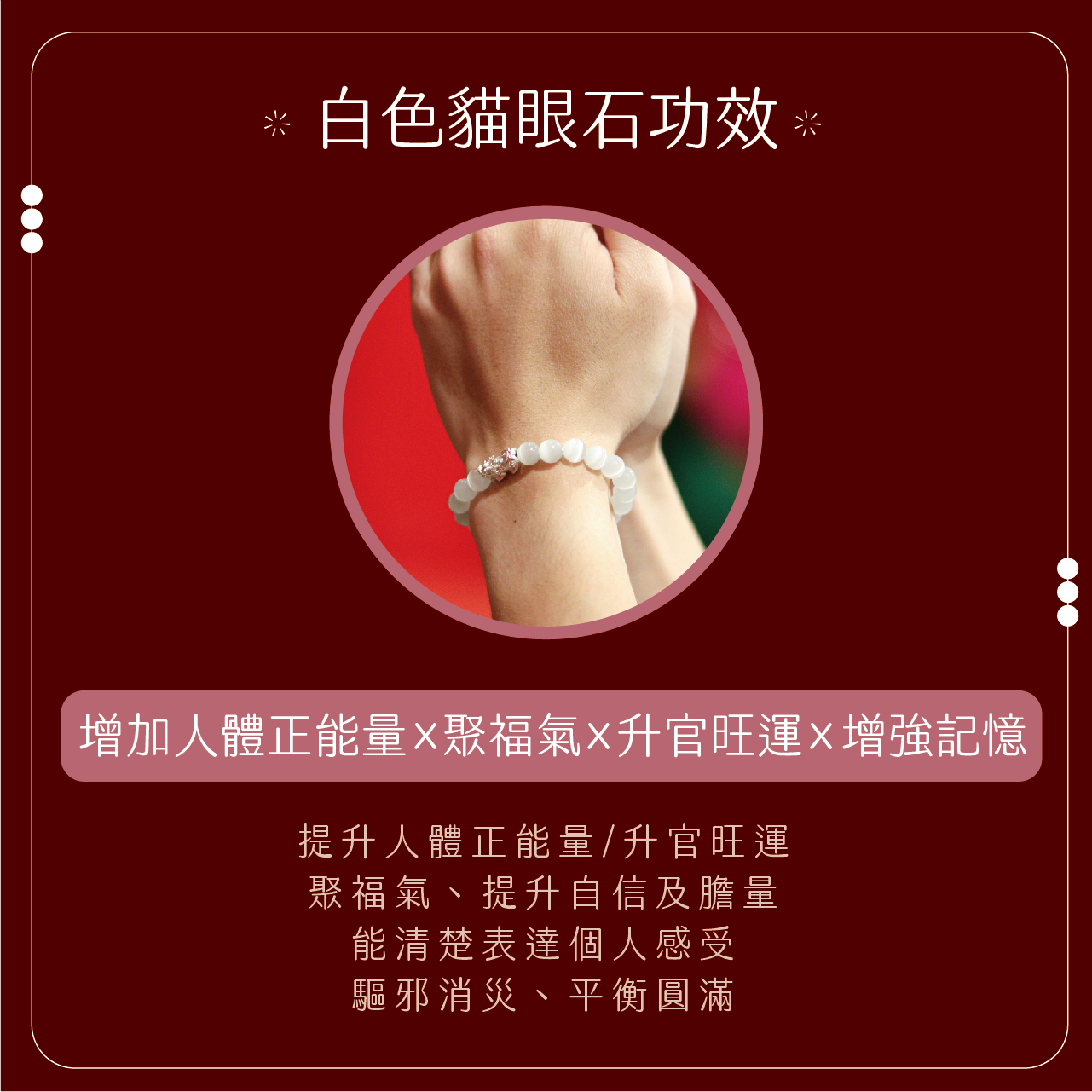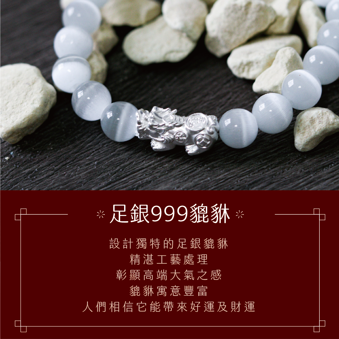 白色貓眼石x純銀貔貅手鍊|增加人體正能量|升官旺運【聚寶閣】