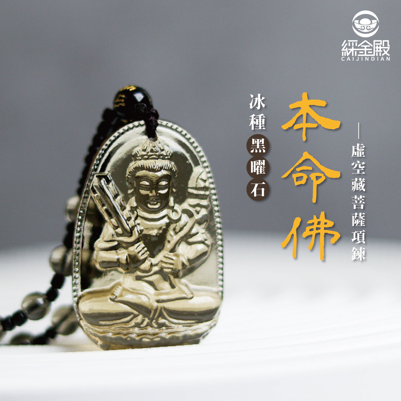 虛空藏菩薩冰種黑曜石本命佛項鍊|避開破財|貴人相助|人財俱旺【綵金殿】
