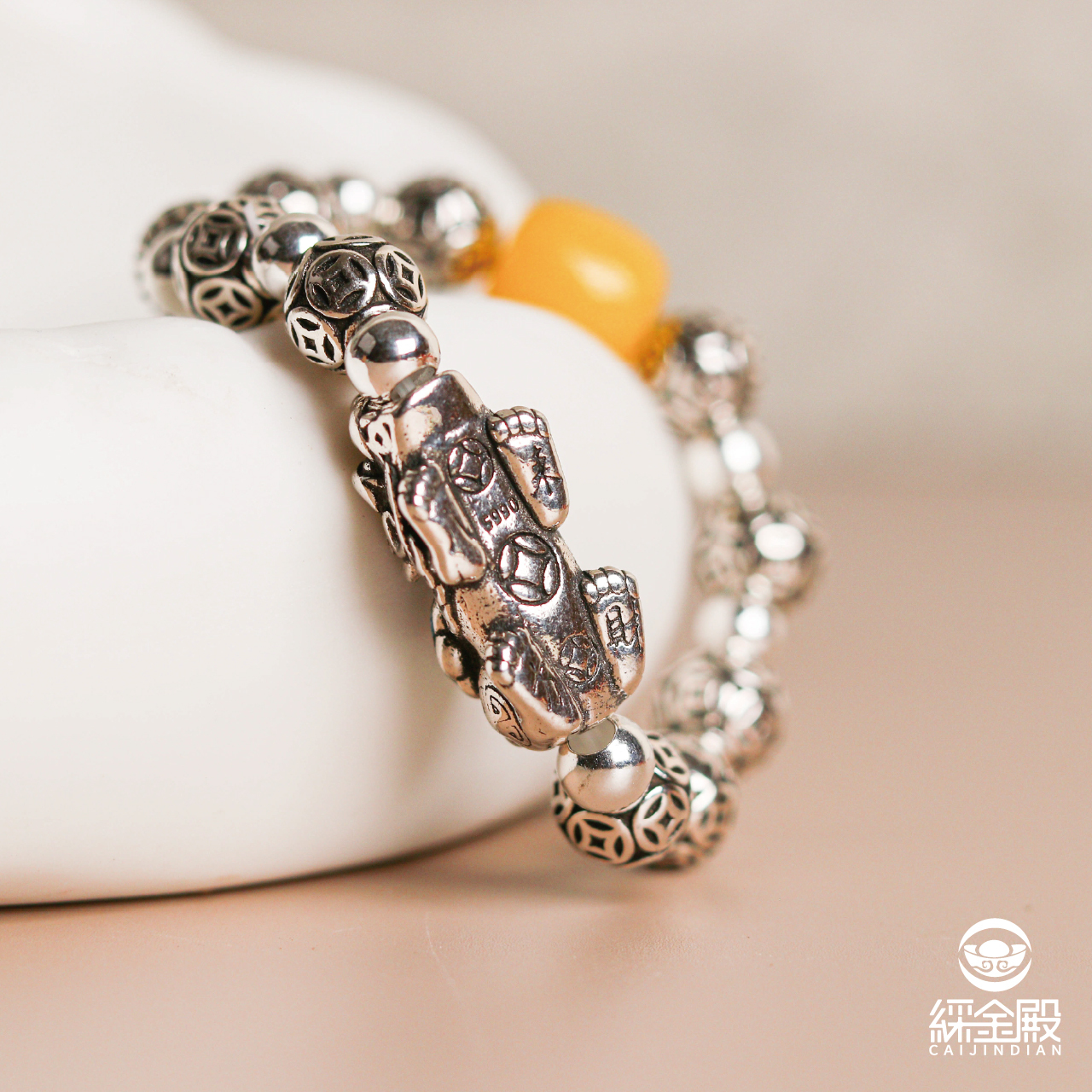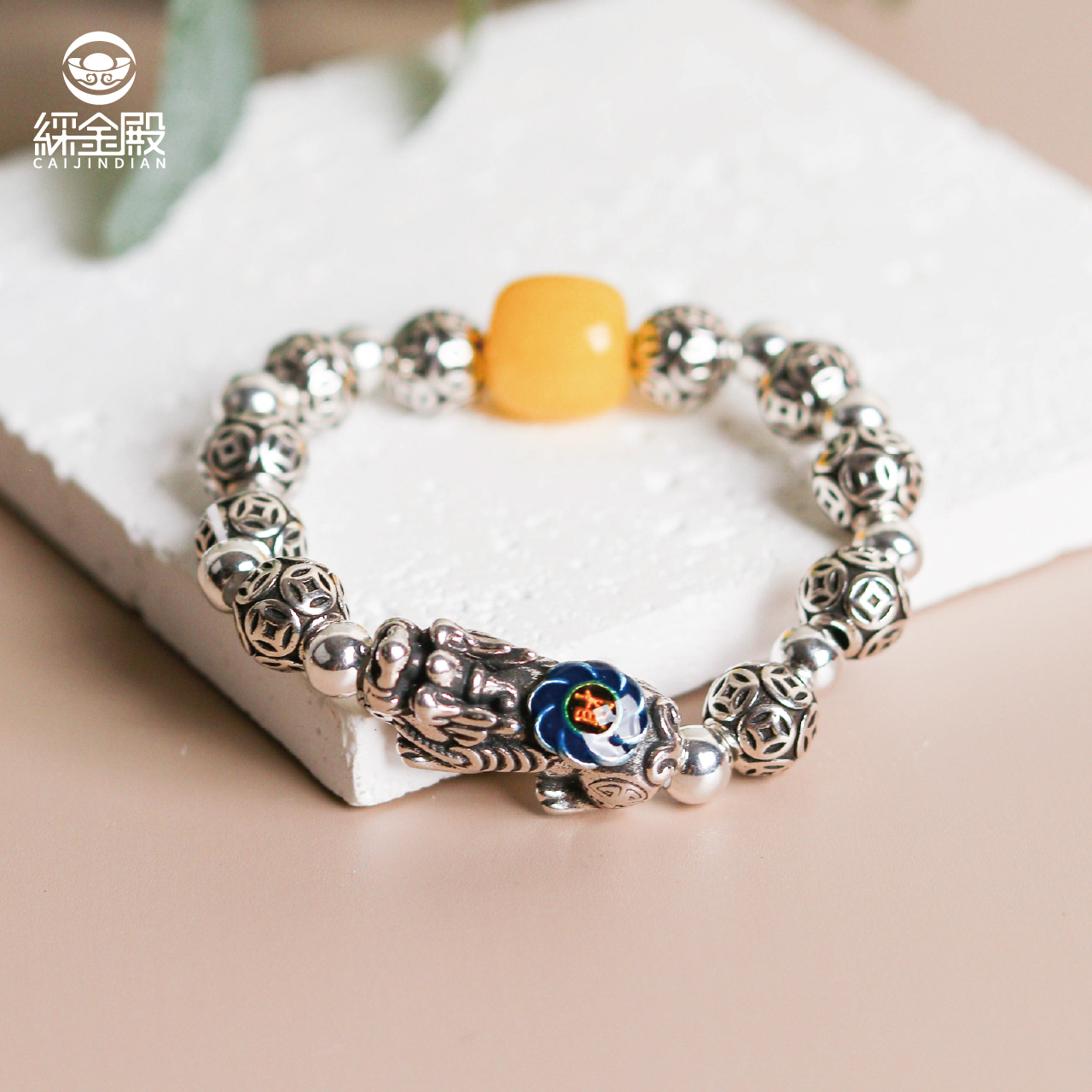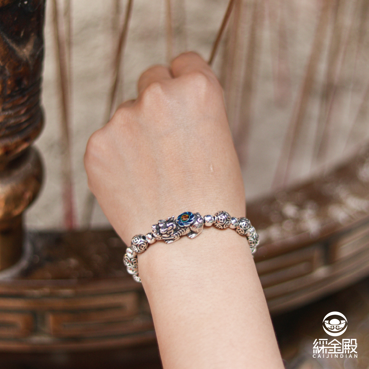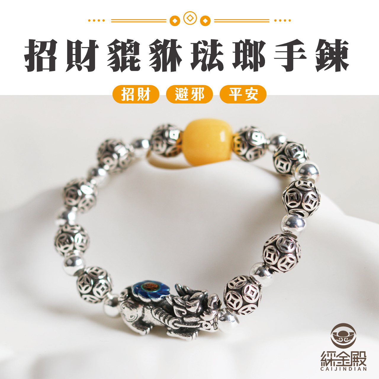 琺瑯搭配招財貔貅及銅錢圖樣隔珠