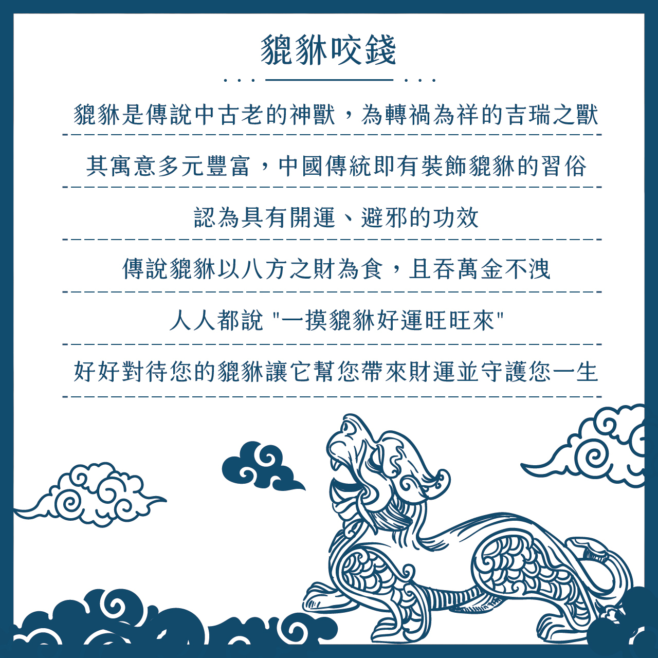 傳說貔貅以八方之財為食,且吞萬金不洩