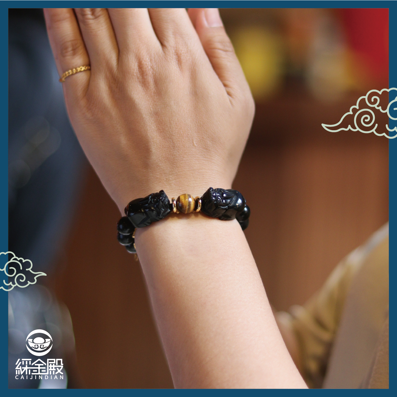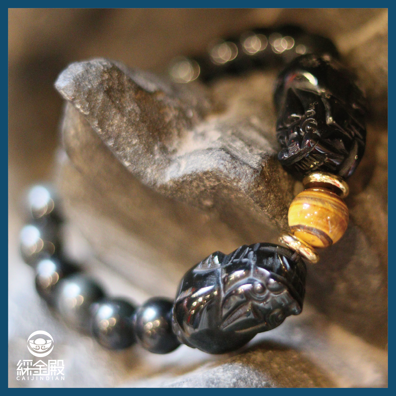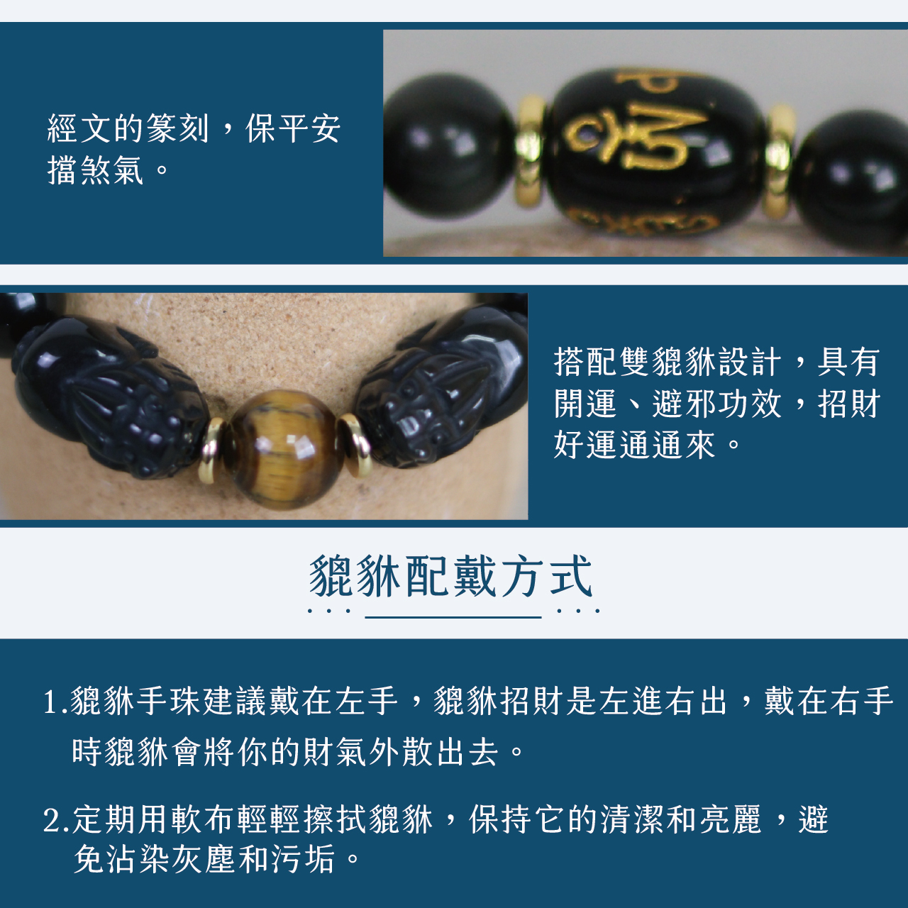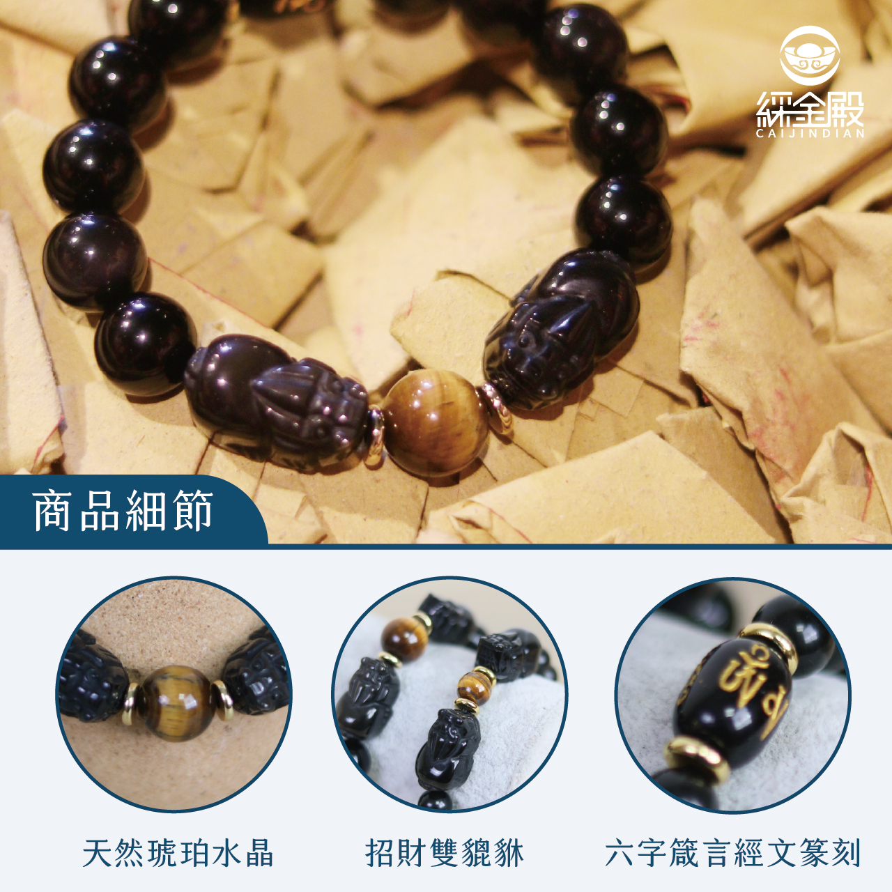招財雙貔貅虎眼石手鍊(六字箴言)-10mm|招財|防小人|擋煞| 避邪【綵金殿】