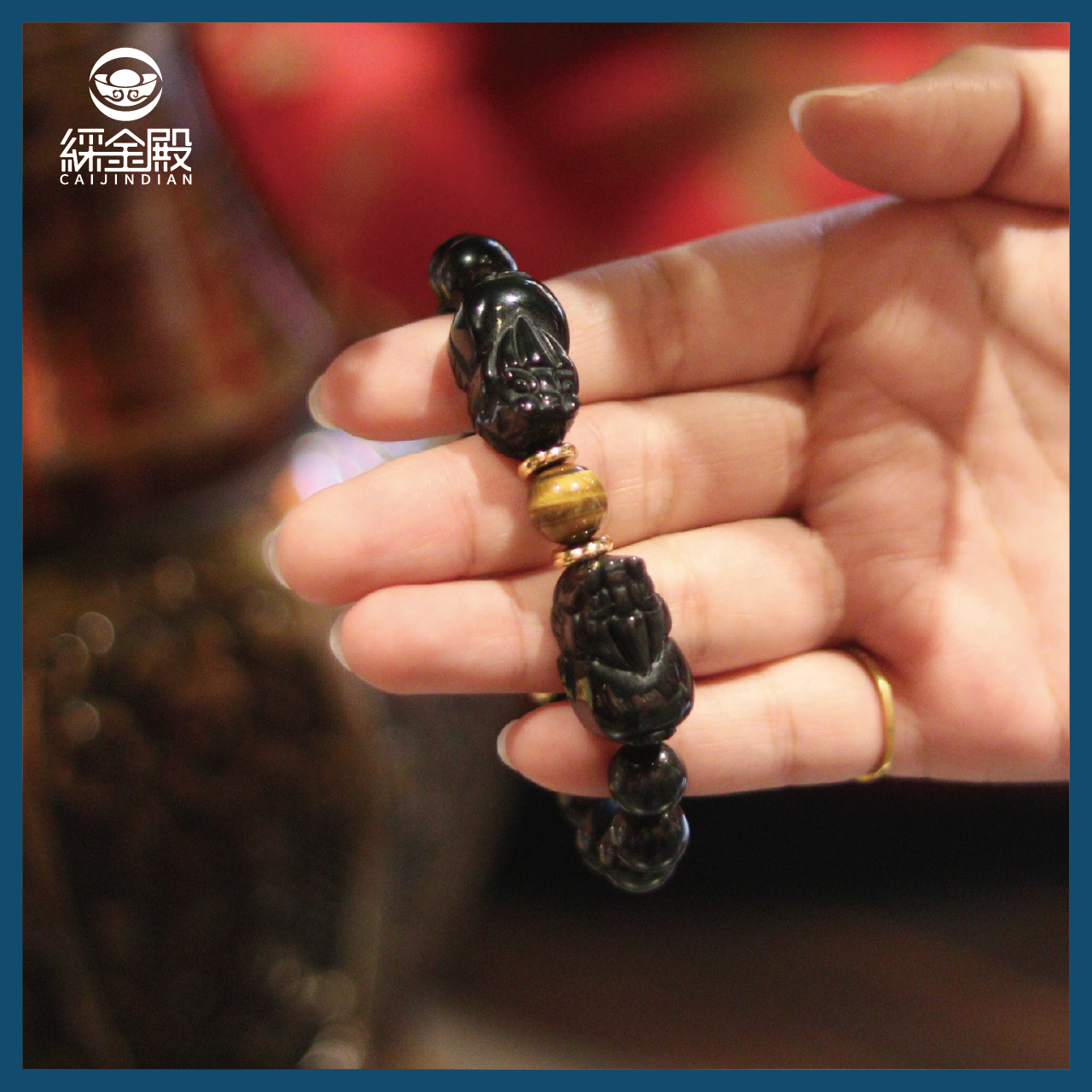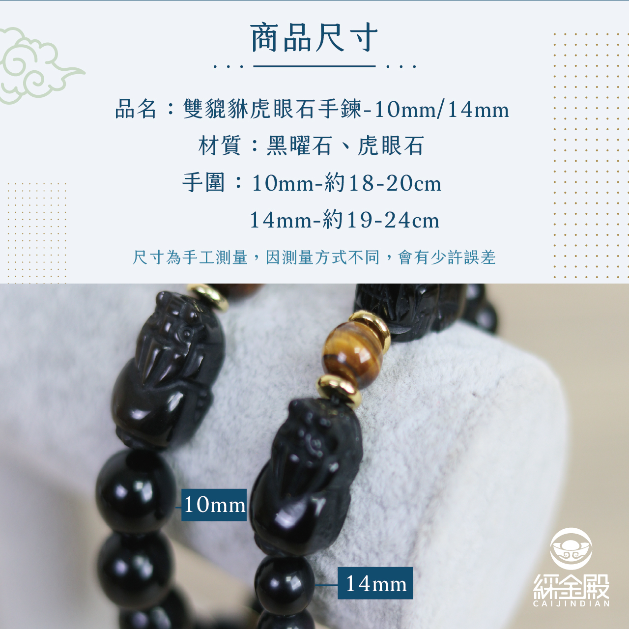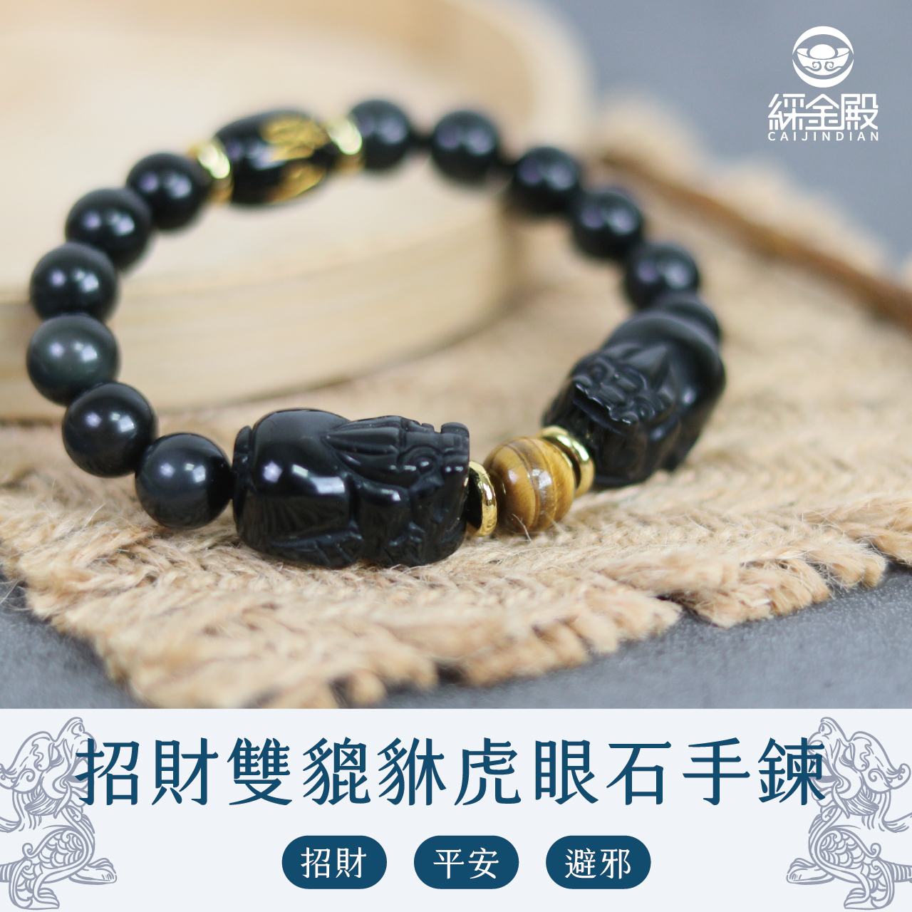 招財雙貔貅虎眼石手鍊(六字箴言)-14mm|招財|防小人|擋煞| 避邪【綵金殿】
