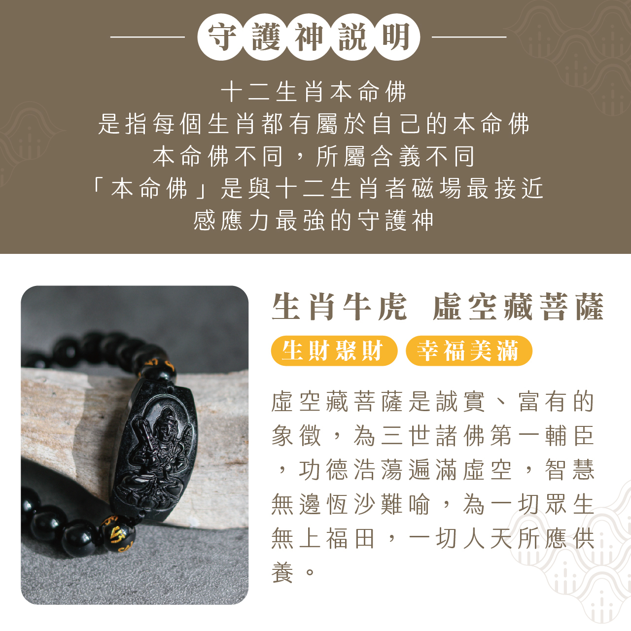 生肖牛/虎、本命佛(虛空藏菩薩)黑曜石手珠|生財聚財|幸福美滿|手鍊|過爐加持【綵金殿】