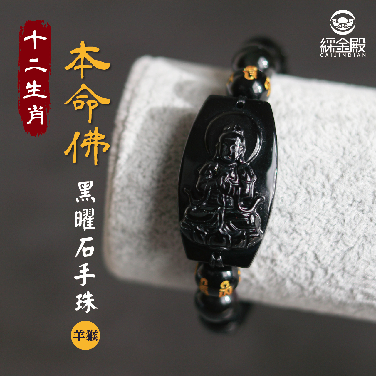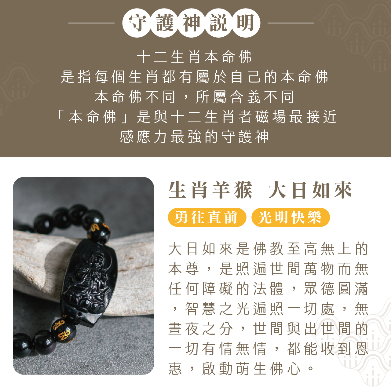 生肖羊/猴、本命佛(大日如來)黑曜石手珠|勇往直前|光明快樂|手鍊|過爐加持【綵金殿】