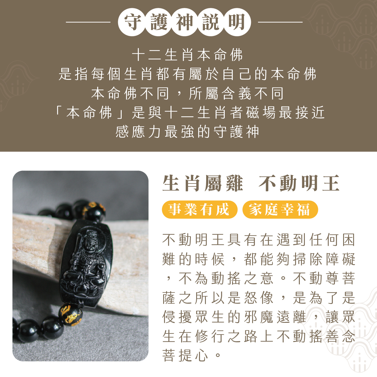 生肖雞、本命佛(不動明王)黑曜石手珠|事業有成|家庭幸福|手鍊|過爐加持【綵金殿】