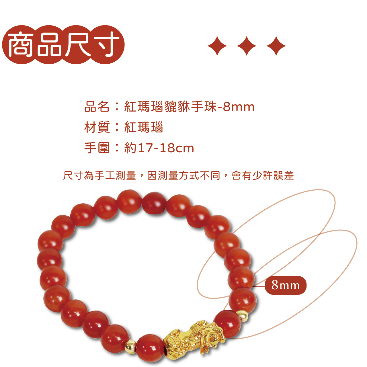 紅瑪瑙貔貅手珠|招財|平衡正負能量|舒緩壓力| 避邪【綵金殿】