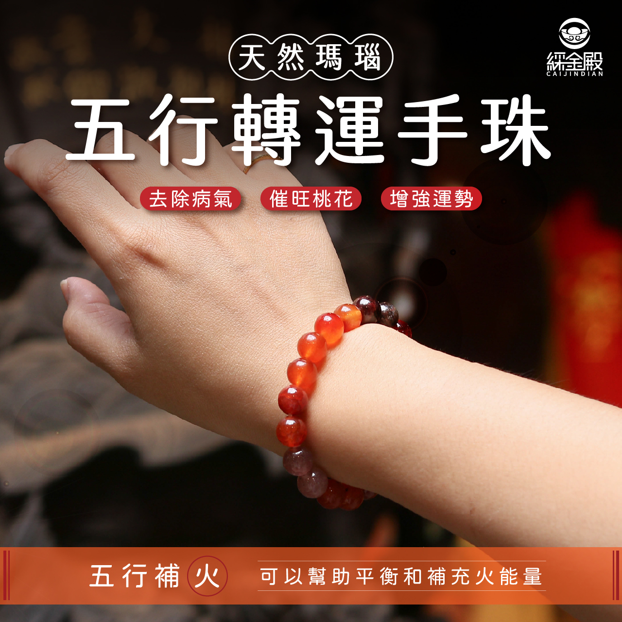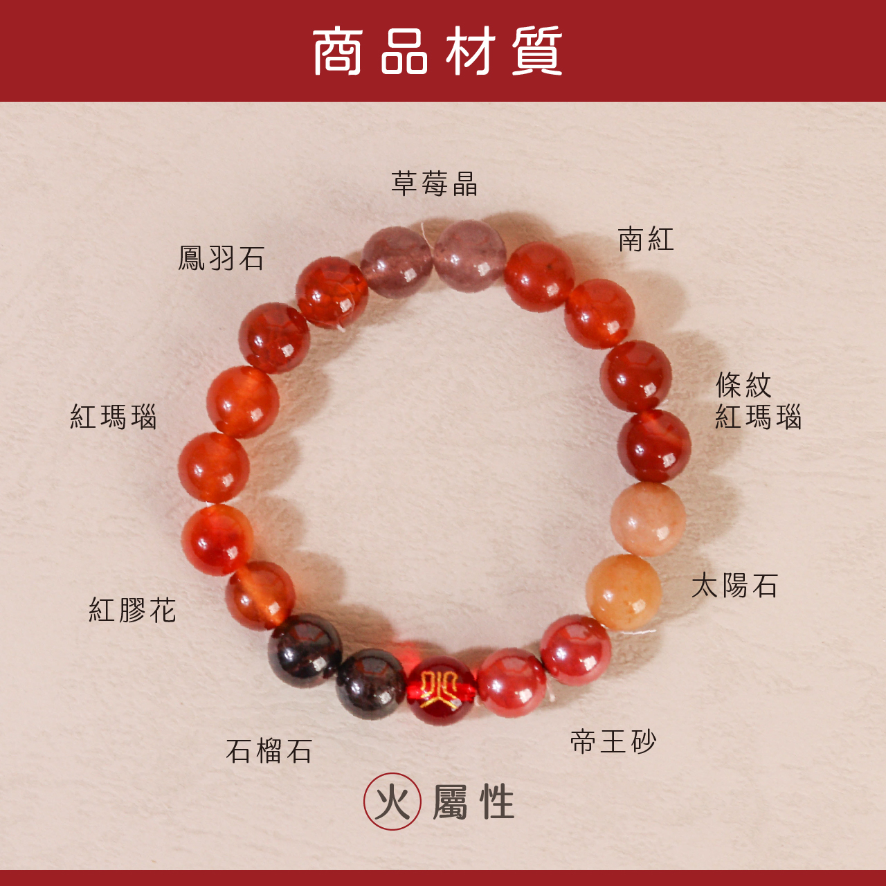 火屬性-天然瑪瑙五行轉運手珠|紅色|增強運勢|去病氣|催旺桃花|手鍊|手繩【綵金殿】