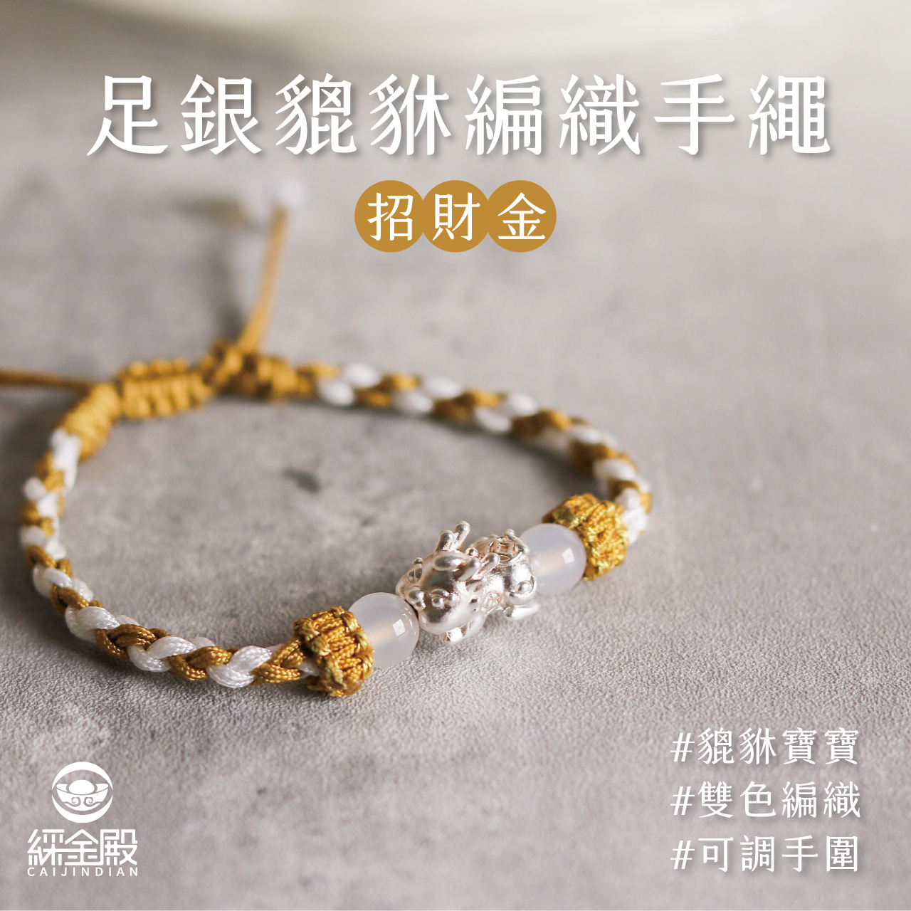 招財金-足銀貔貅編織手繩|招財|開運|平安|福氣|可調手圍【綵金殿】