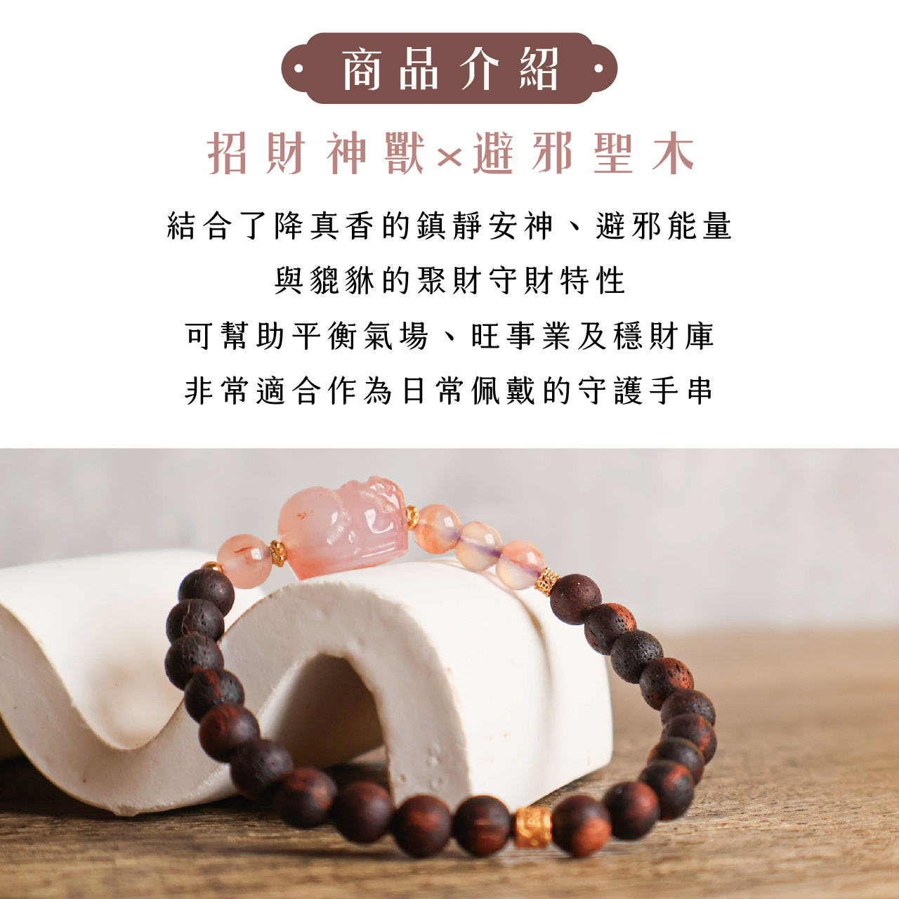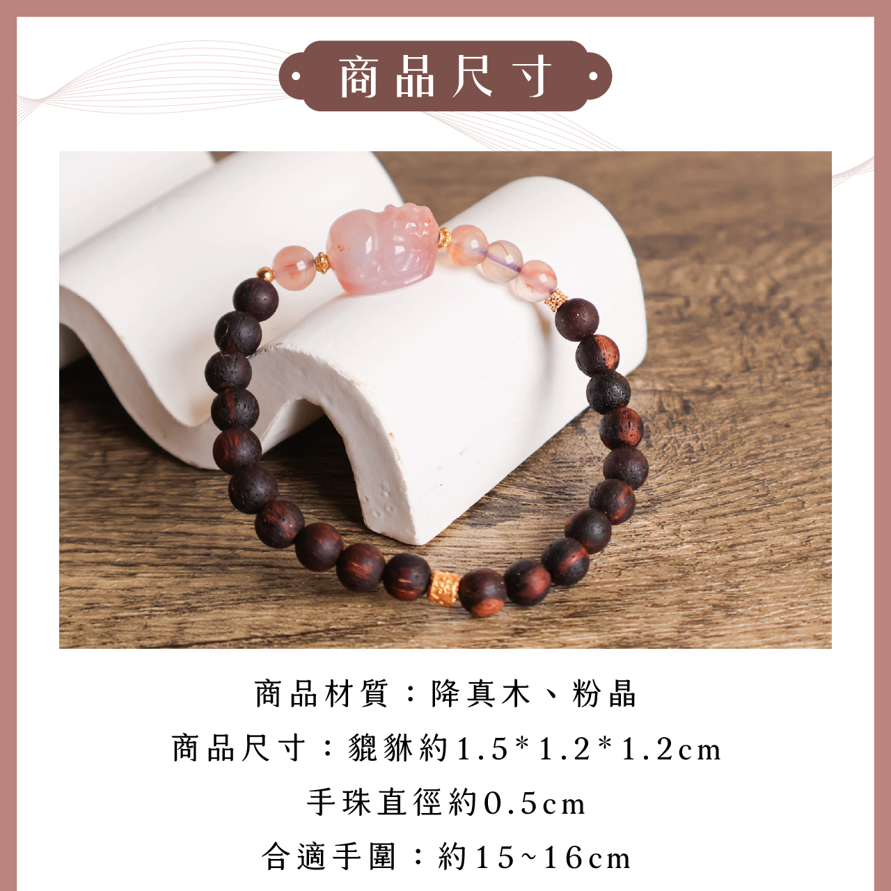 | 材質 | 降真木、粉晶 |