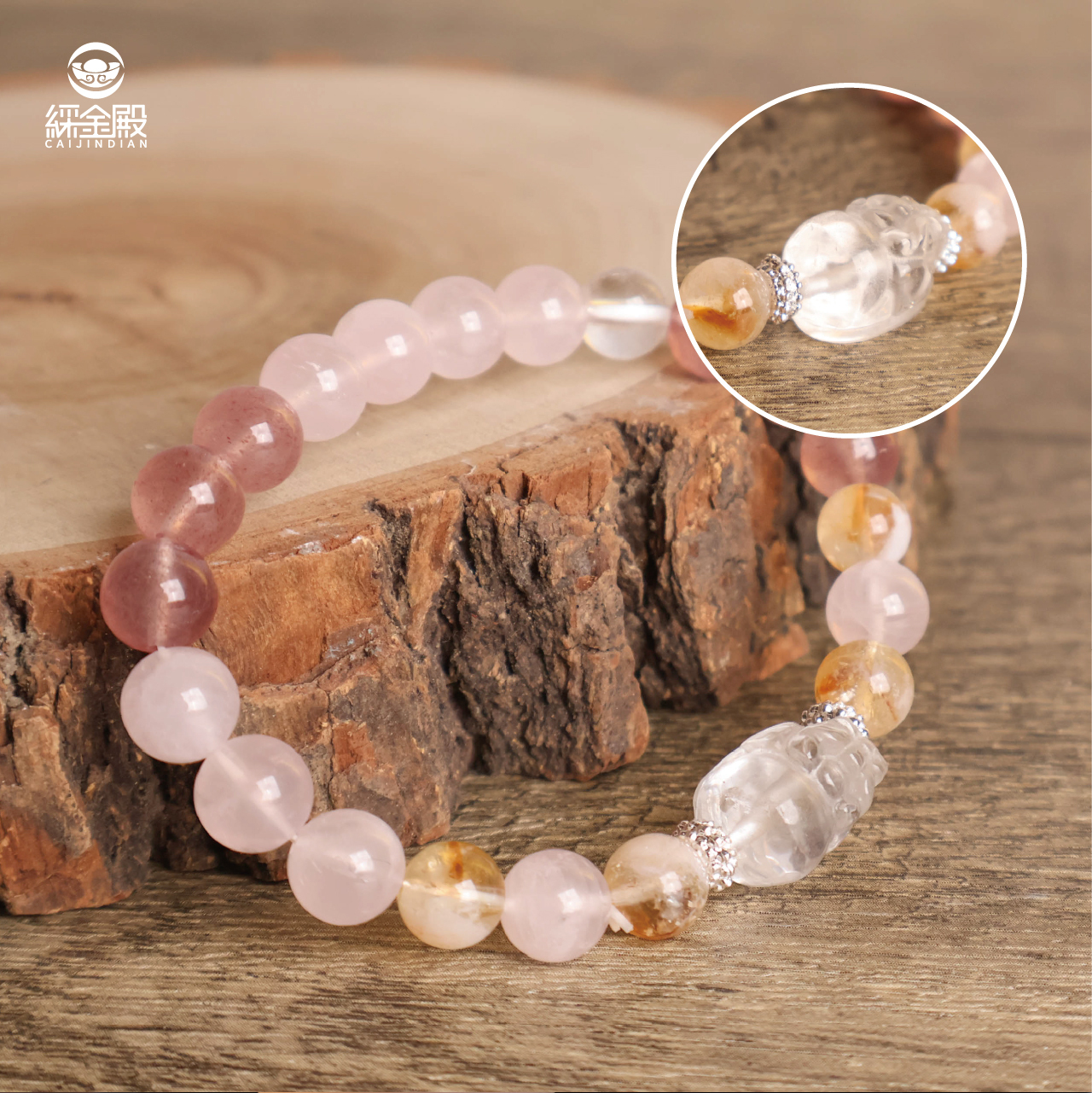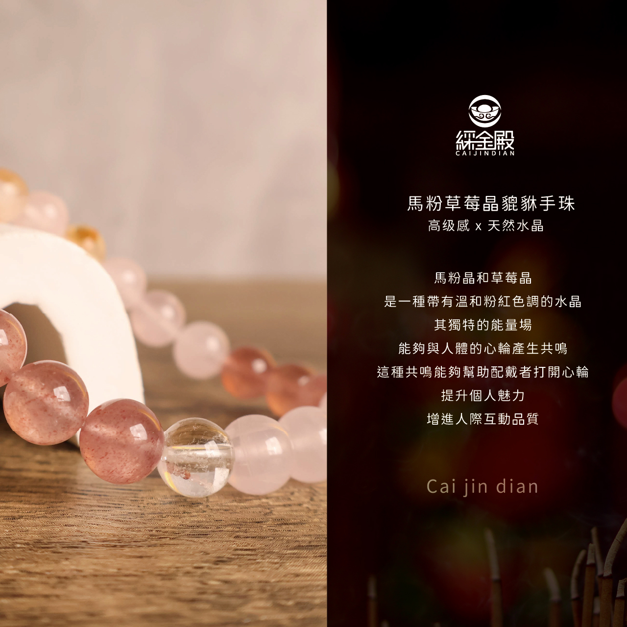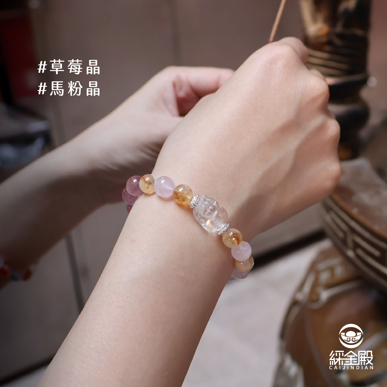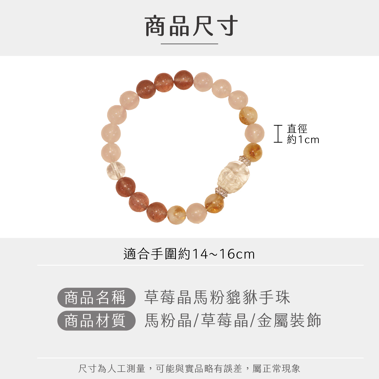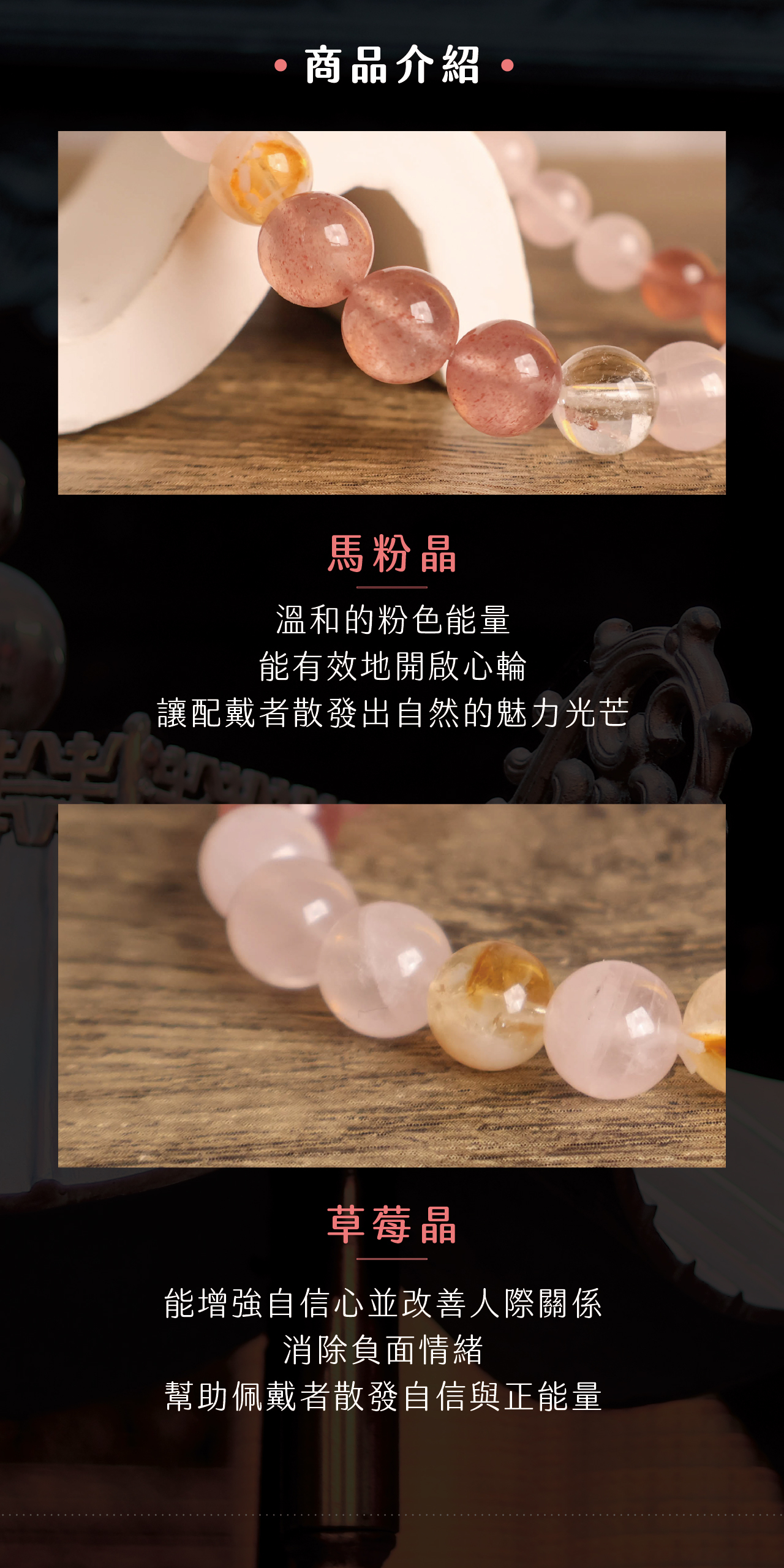 | 材質 | 馬粉晶、草莓晶、金屬裝飾 |