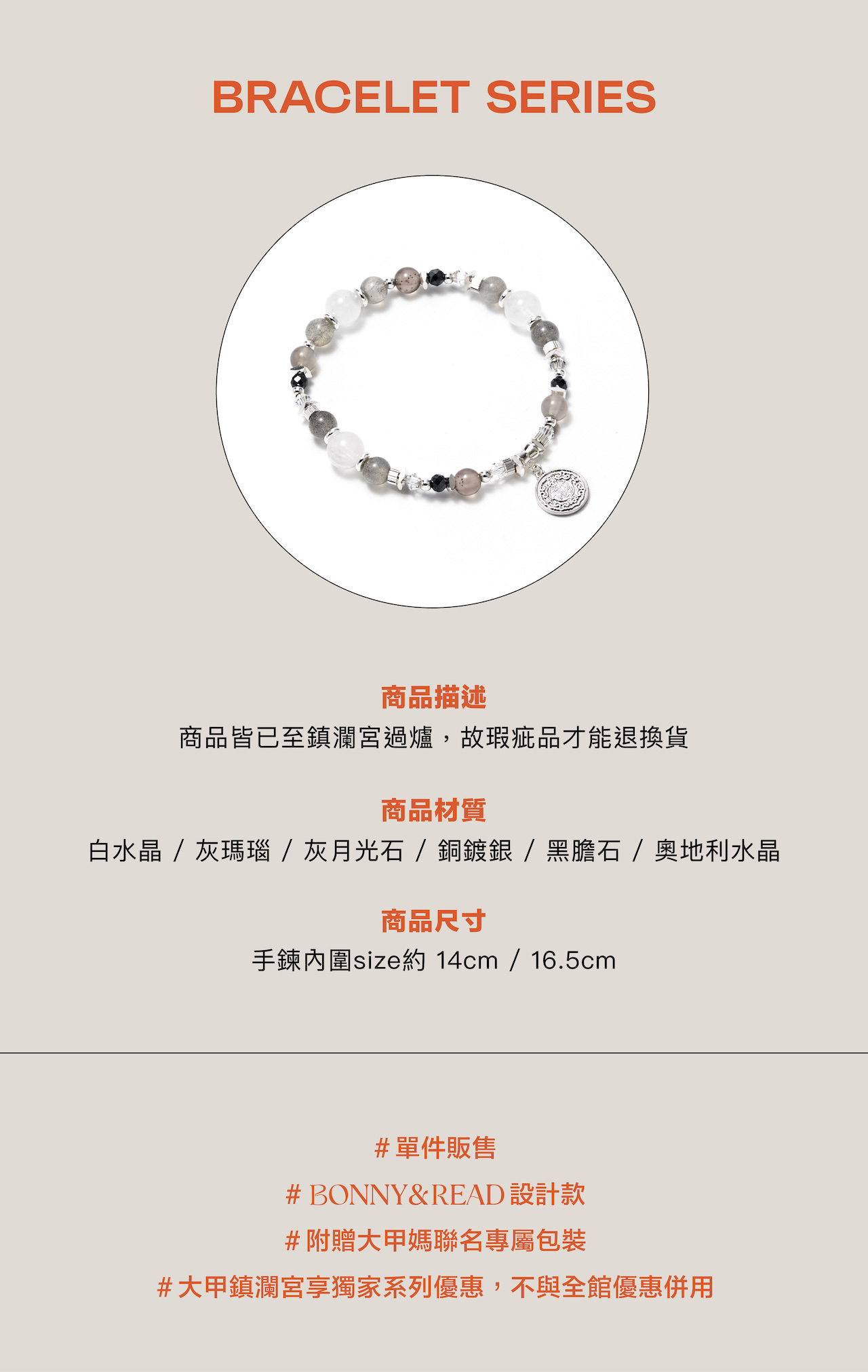 商品材質:白水晶 / 灰瑪瑙 / 灰月光石 / 黑膽石 / 奧地利水晶 / 銅鍍銀