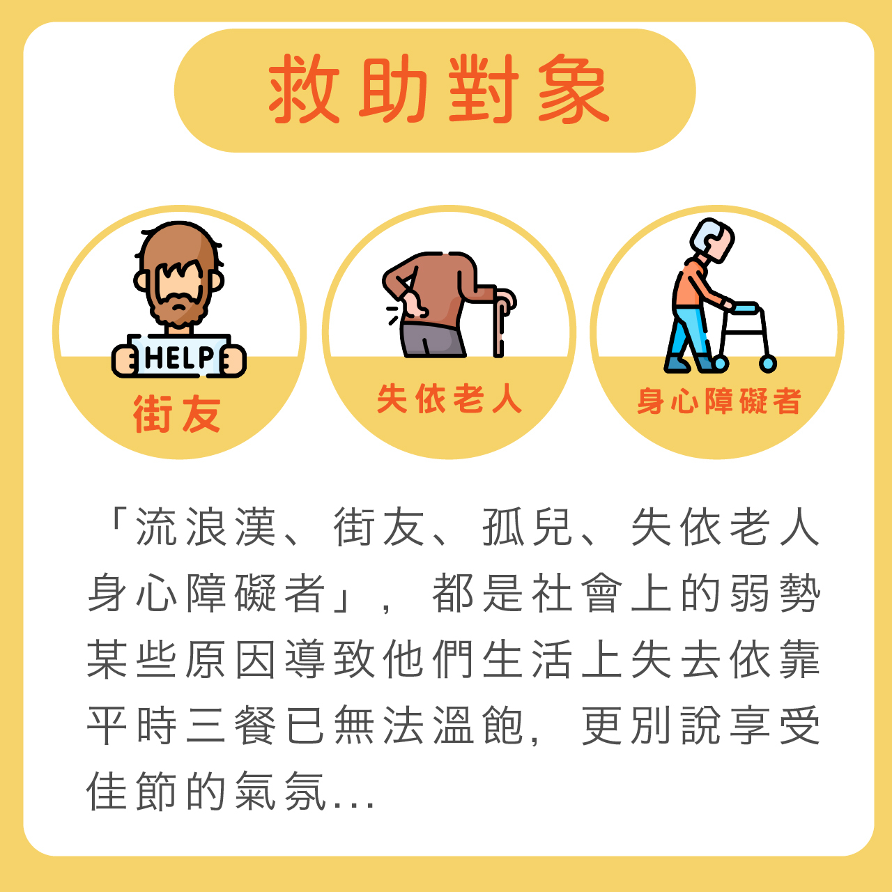 社會上其實有很多弱勢是無法享受佳節溫暖的