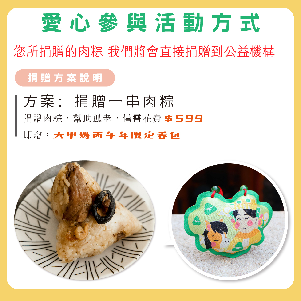 每捐一串肉粽,您將會收到一個2026限定添加百年香灰