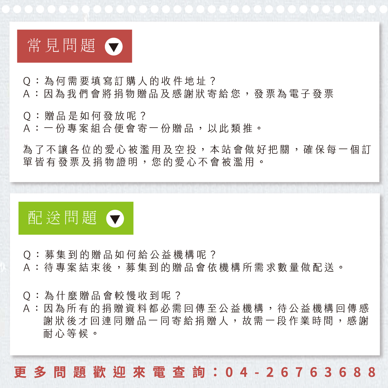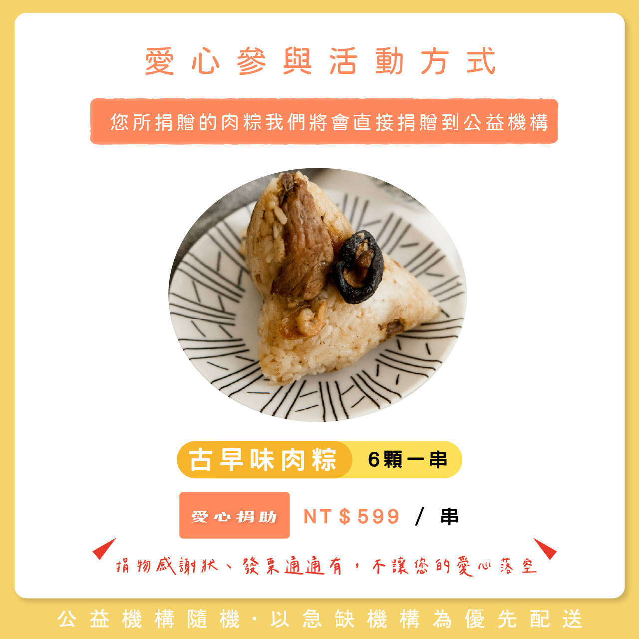 我們將以優先缺粽的機構優先去做捐贈