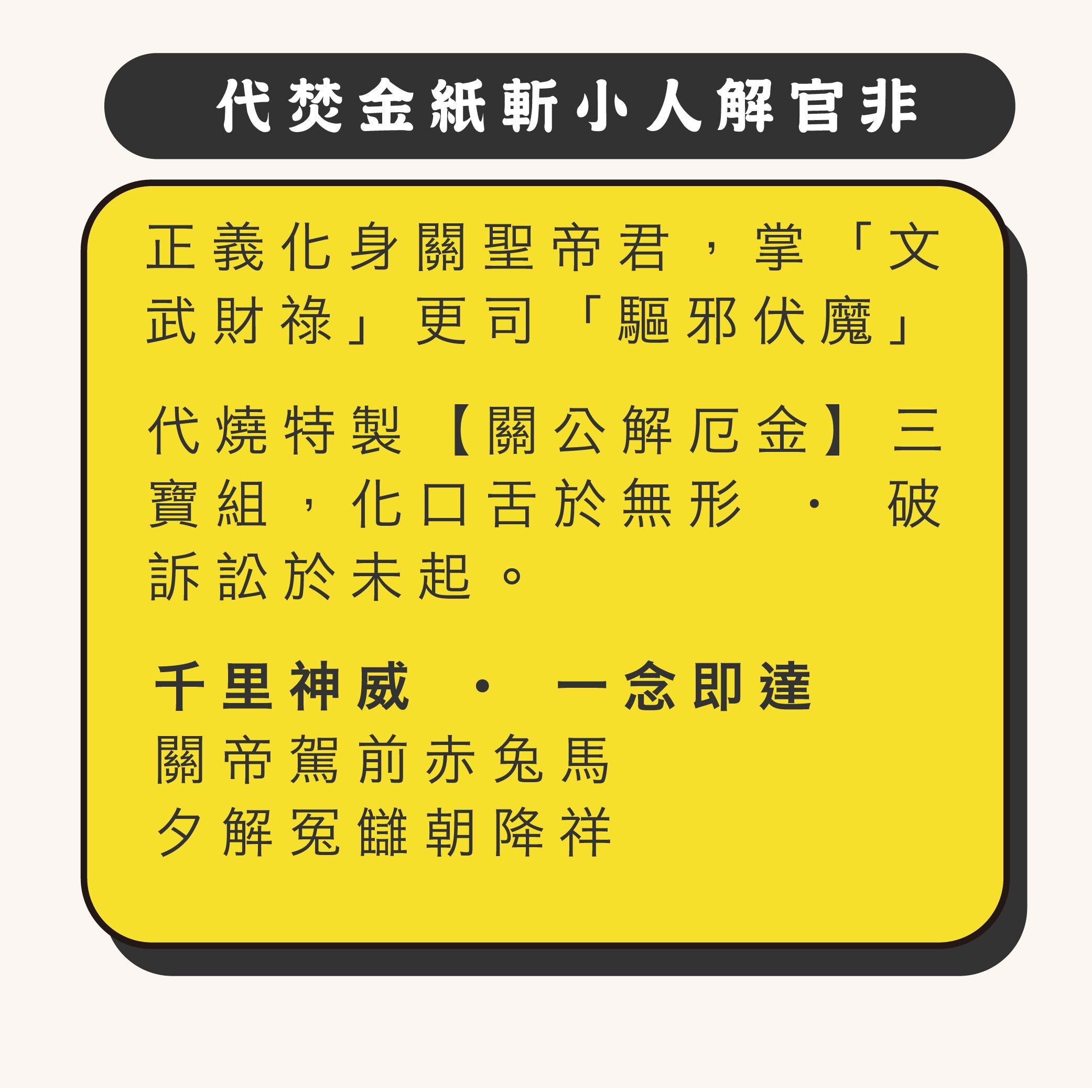 防小人、解官非、解冤釋結