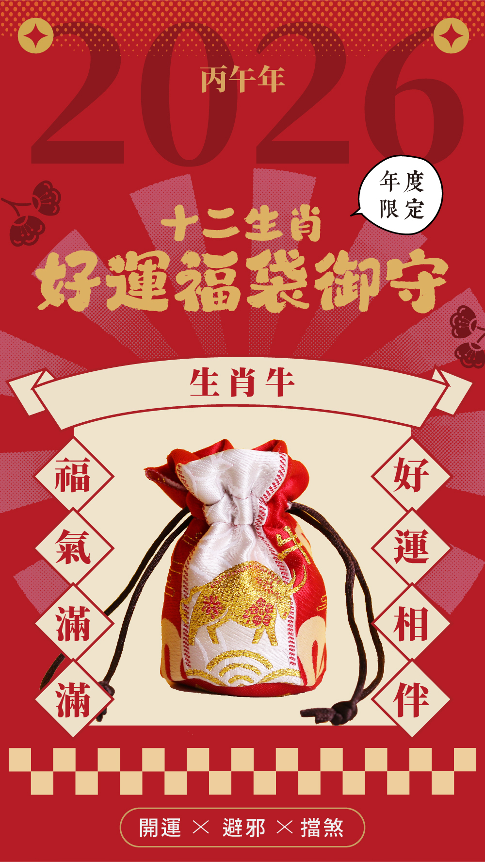 生肖牛-好運福袋御守|2026丙午年|限定|馬年福袋|御守|平安庇佑【鎮瀾宮】