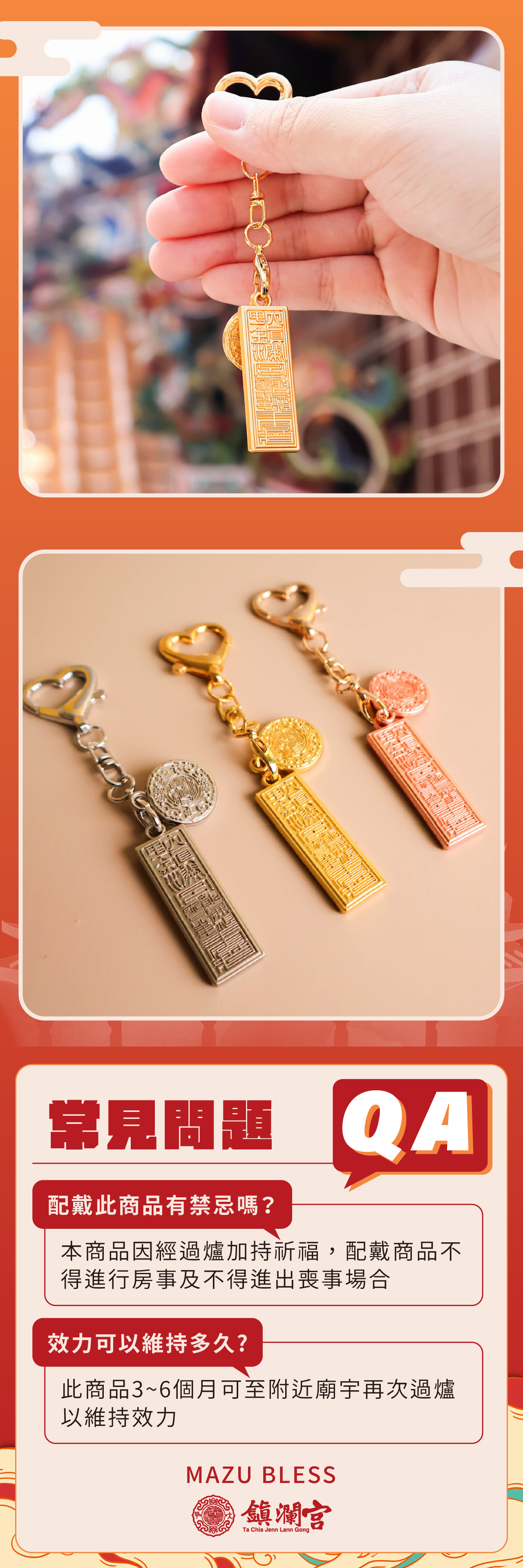 金色-符令宮徽避邪吊飾|過爐加持|消災解厄|保平安|鑰匙圈【鎮瀾宮】