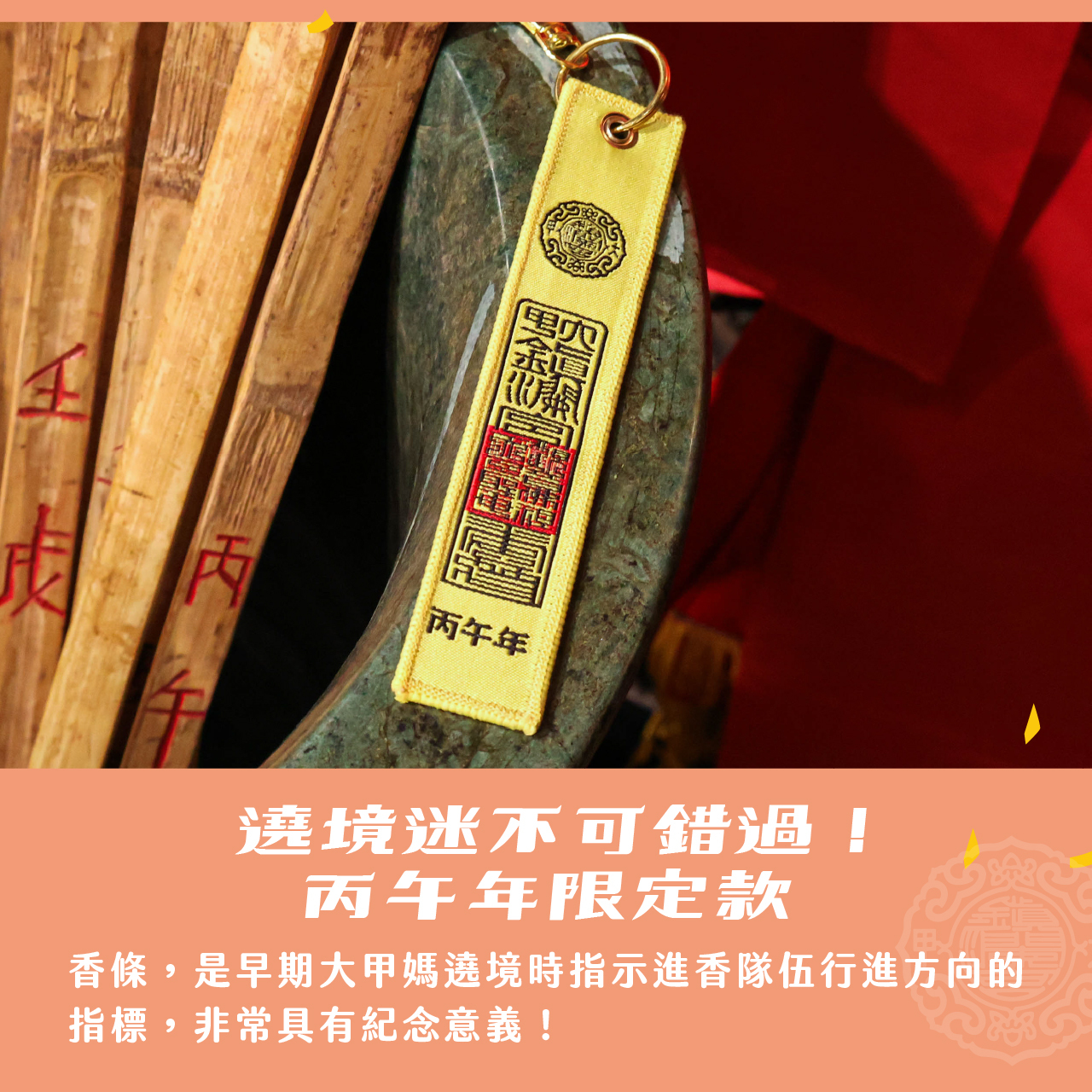 源自大甲媽遶境傳統「香條」,是早期引導進香隊伍行進方向的重要指標