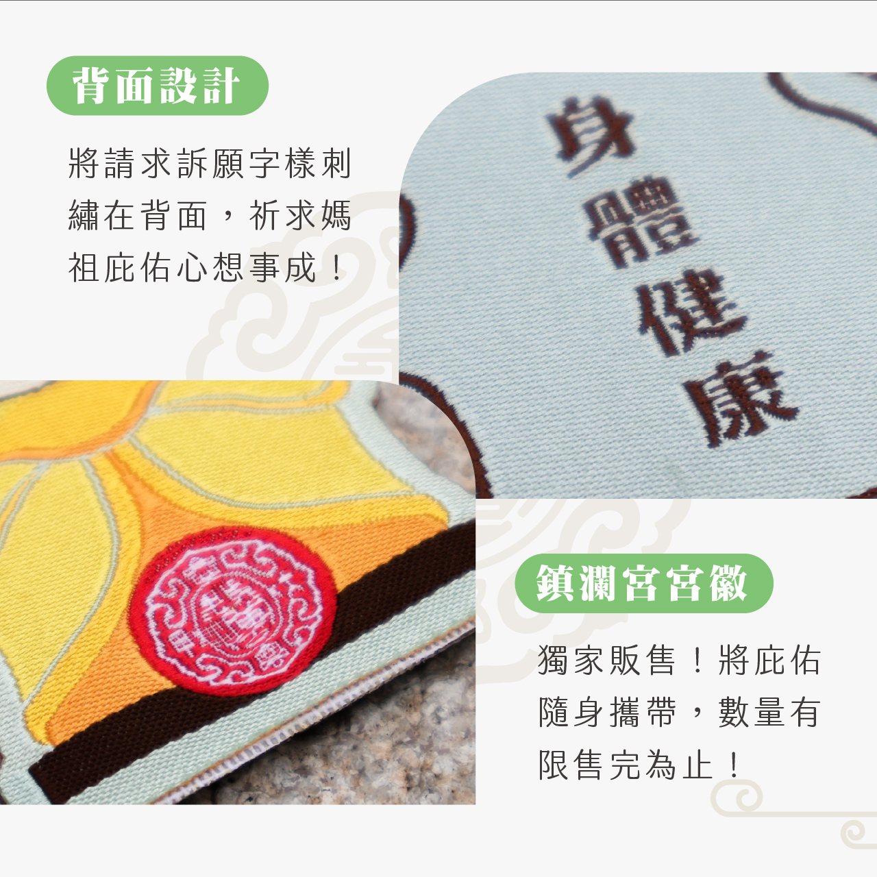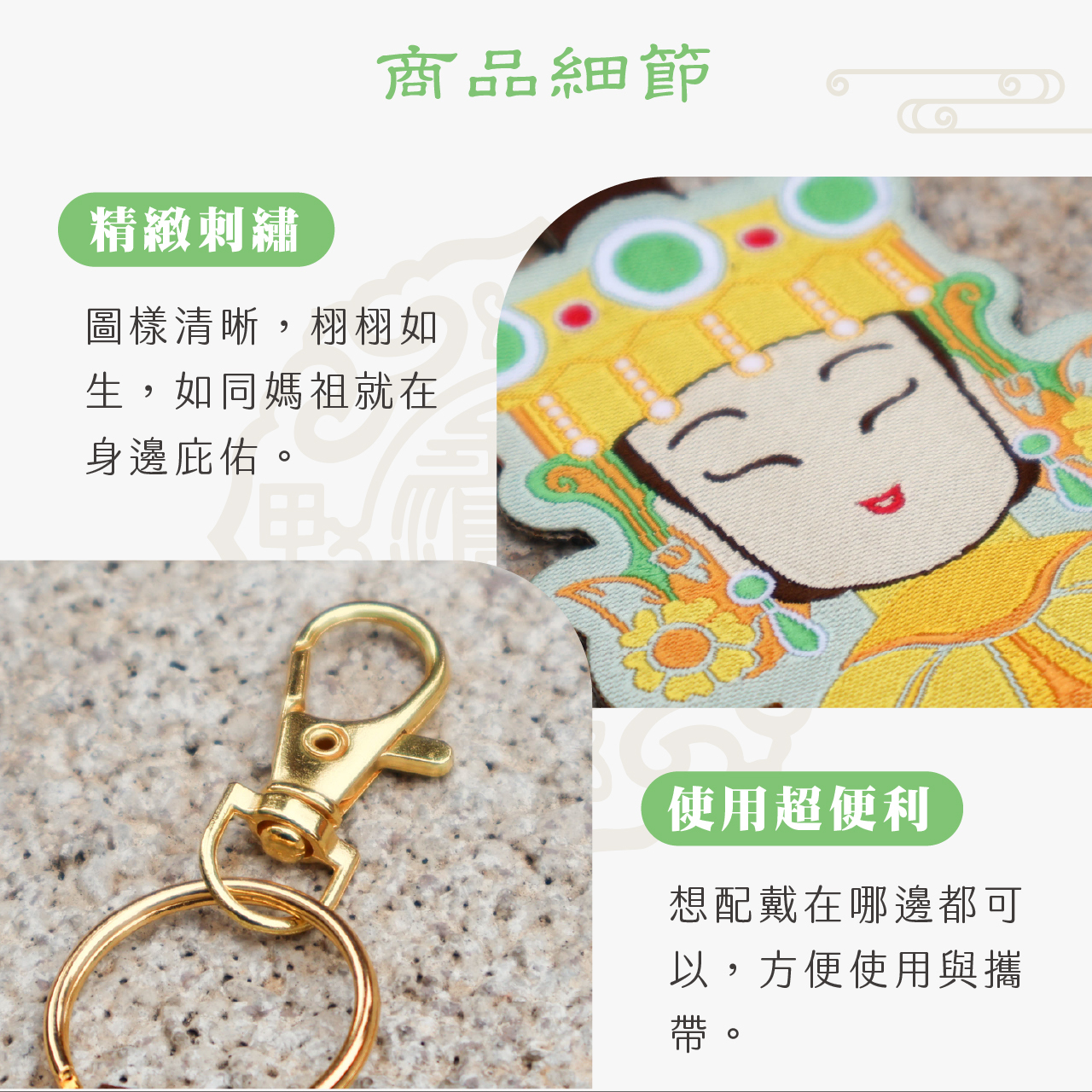 本系列吊飾採用 MIT 精緻電繡工藝