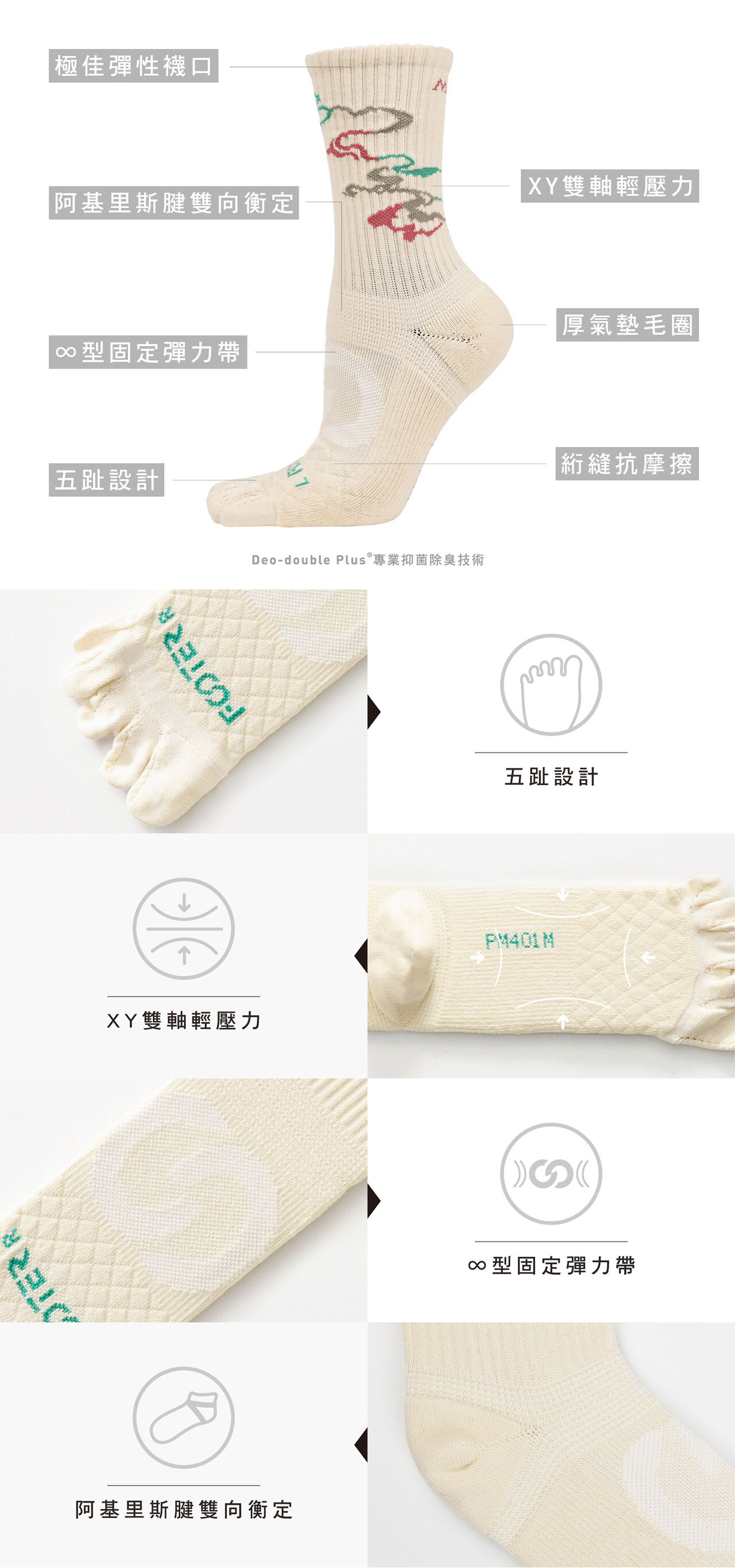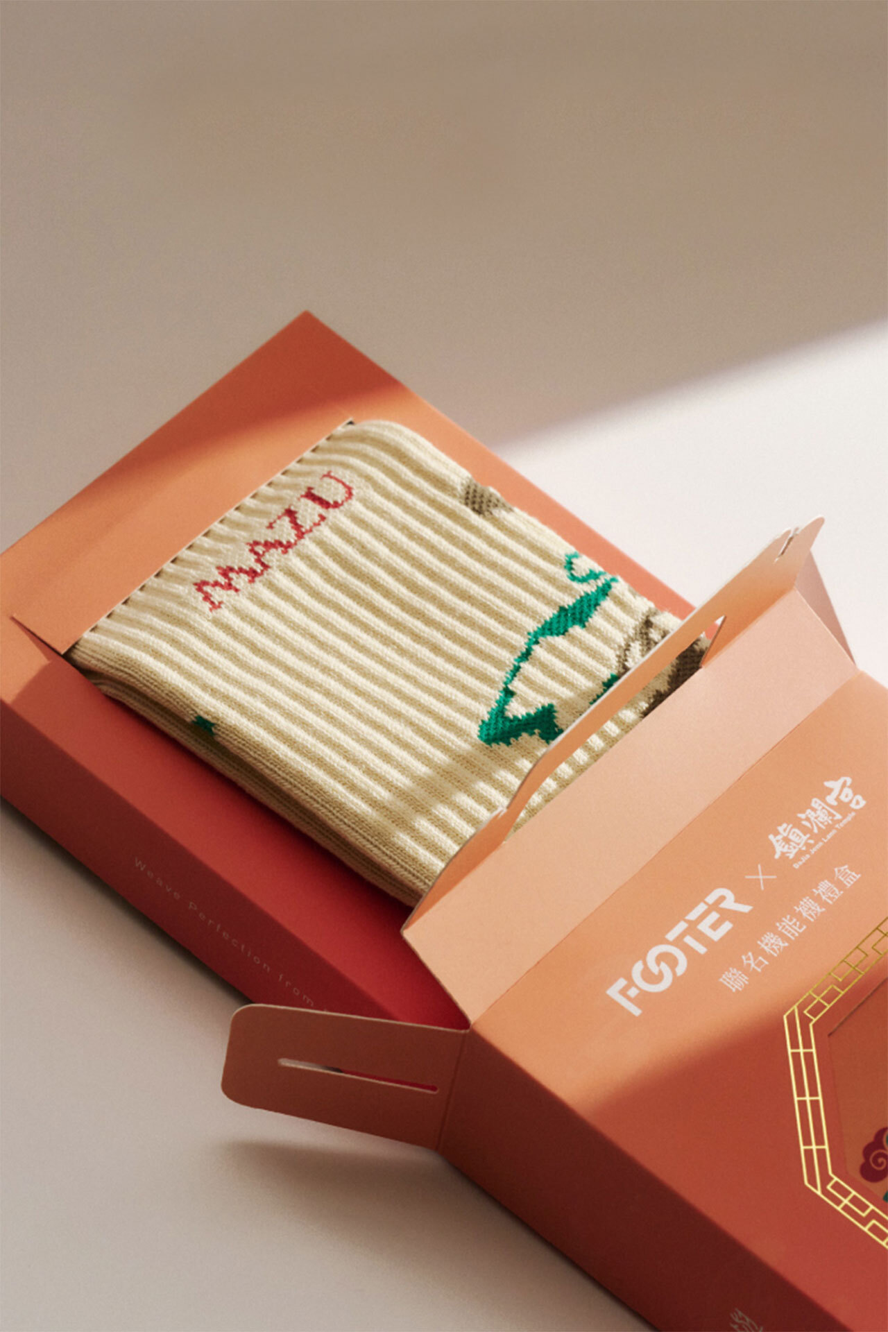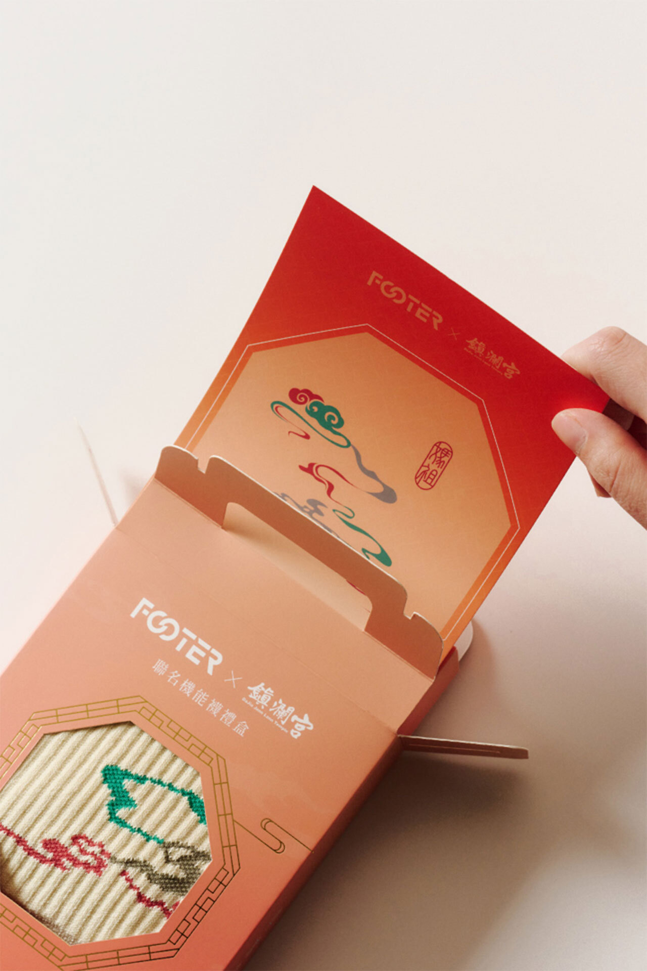 FOOTER x大甲鎮瀾宮聯名款【長程守護.極致穩定】透氣織法結合五趾設計,減少摩擦與悶熱;搭配全厚底氣墊,長途行走不疲勞、足底更穩定。襪身緹花線條象徵香火冉冉上升直達天庭,邁出的每一步都將信念化為腳下的穩定力量。《FOOTER x 大甲鎮瀾宮聯名系列》每年,大甲媽祖遶境吸引數十萬信徒與媽祖同行,那是一段以腳步踏出信念、以堅持承載祝福的朝聖之旅。FOOTER 跨界攜手大甲鎮瀾宮,將機能襪款與在地信仰結合,以「步步平安」為核心概念,推出獨家限量聯名襪,將信仰化為可穿戴的守護,從340公里的朝聖之路到日常的一小步,願每一步,都被大甲媽祖溫柔庇佑。【冉冉香火襪】香火不滅,信念相承大甲媽祖的香火,在臺灣延續近三百年,每年繞境信徒以腳步託付心中牽掛與祝福,FOOTER將此香火不滅的意象,化做腳上堅定守護,讓這份溫暖的信念在每一步中延續,陪伴你好好走過每一段路程