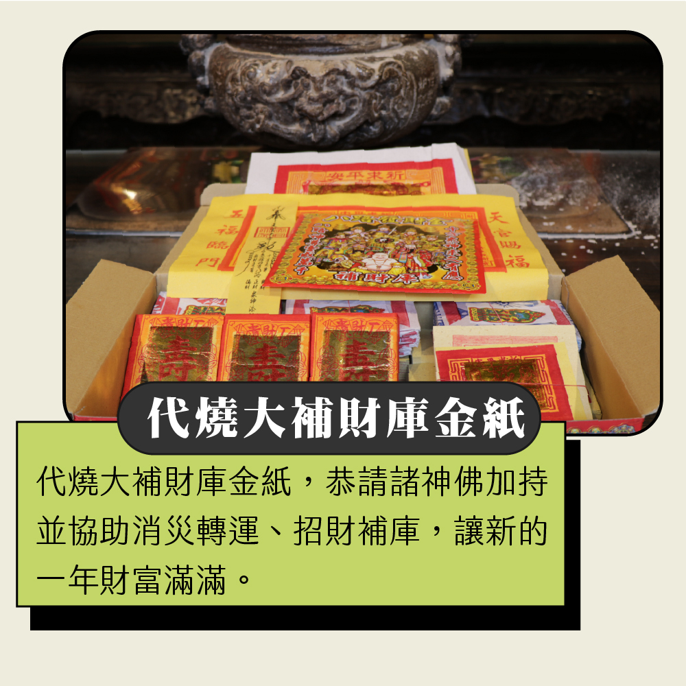 3.代燒大補財庫金紙(含特製全金箔金紙一大份)