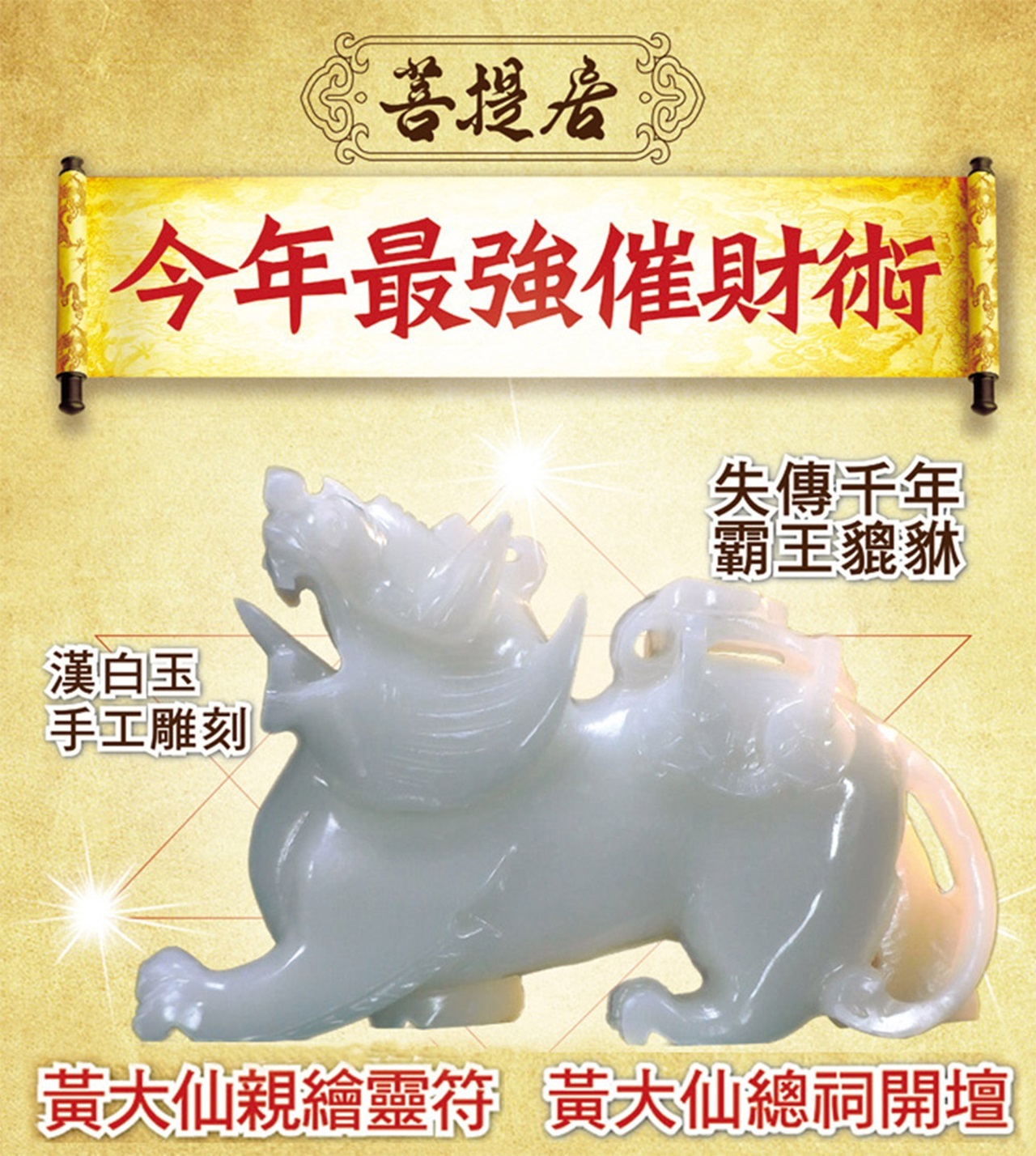 【菩提居】黃大仙白玉霸王貔貅 (廠商直出、不參加免運及滿額贈優惠)