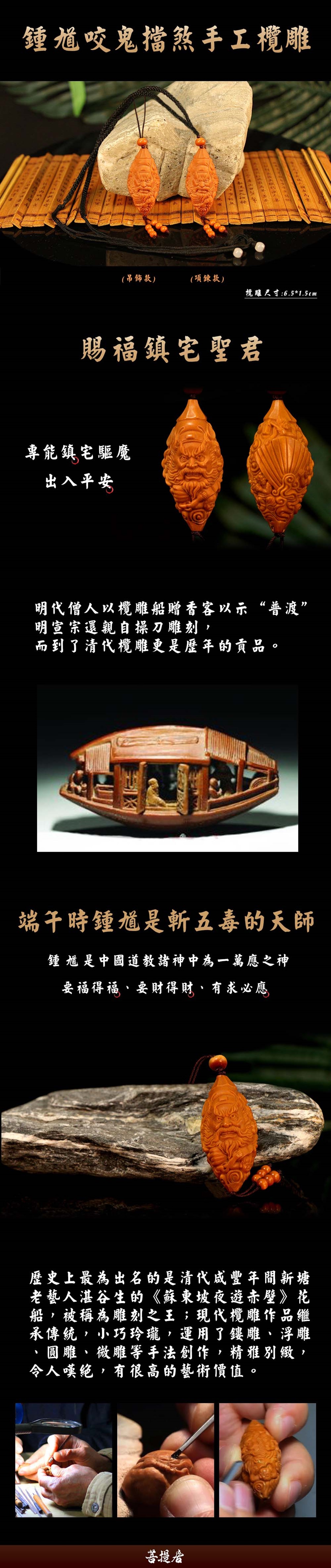 【菩提居】欖雕伏魔大帝護身組(微雕鍾馗)