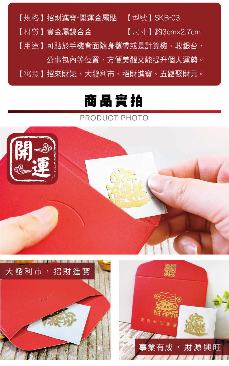 【財神小舖】招財進寶 - 開運金屬貼 (廠商直出、不參加免運及滿額贈優惠)