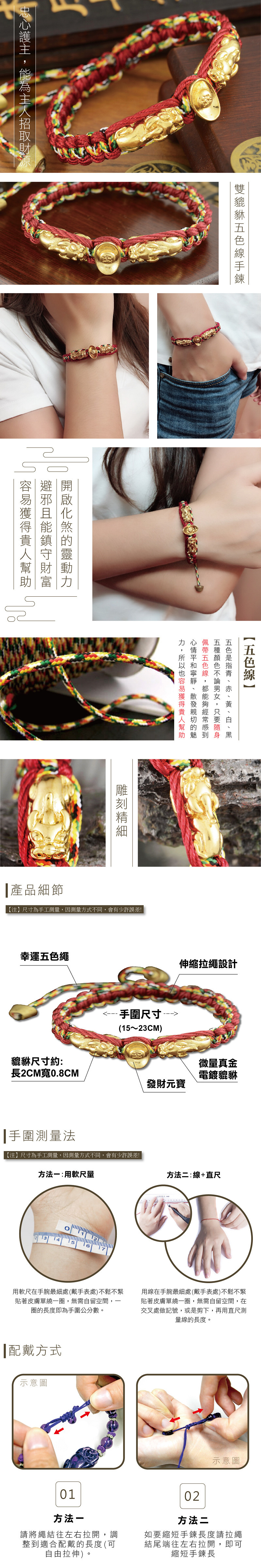 【財神小舖】 雙搶貔貅發財五色線(大)棗紅 (含開光)