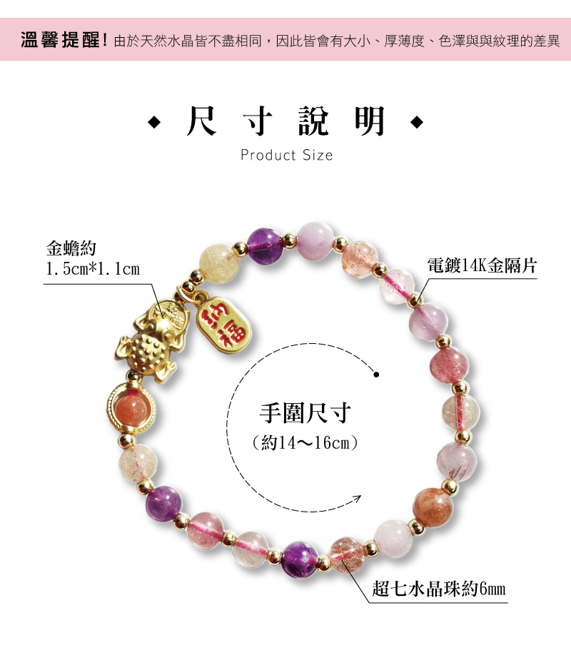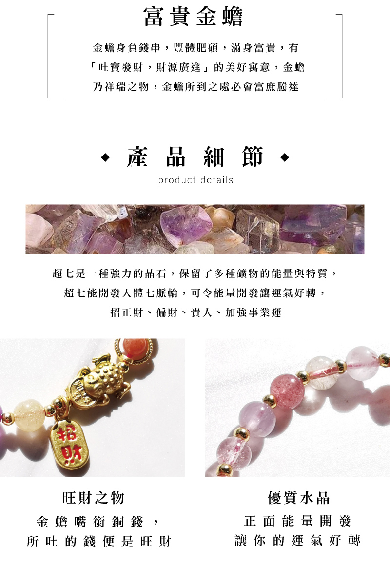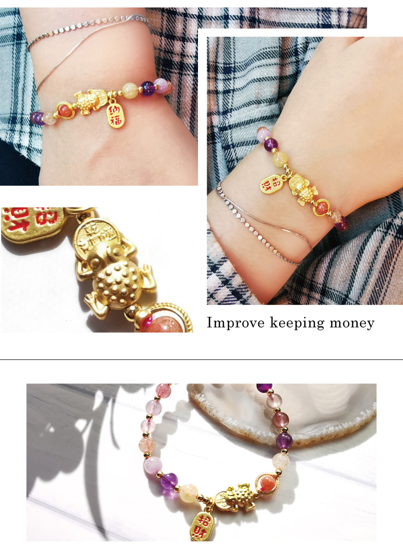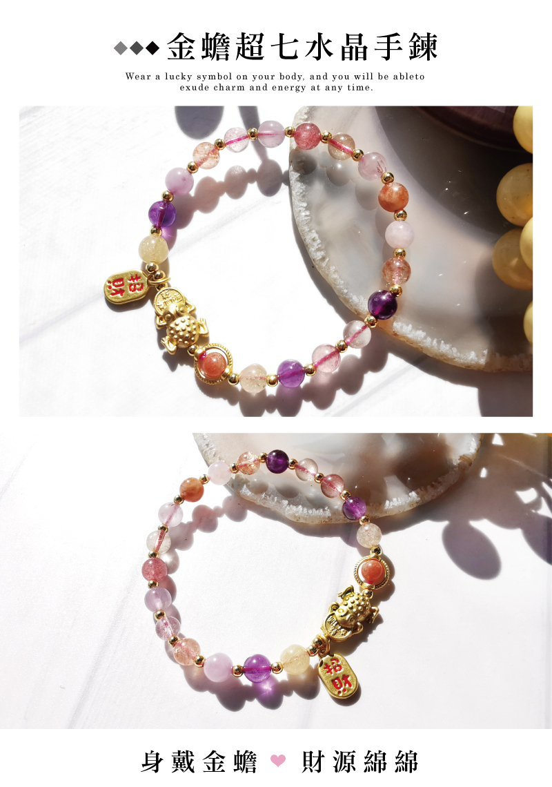 【財神小舖】招財咬錢 - 金蟾超七水晶手鍊6mm (含開光)
