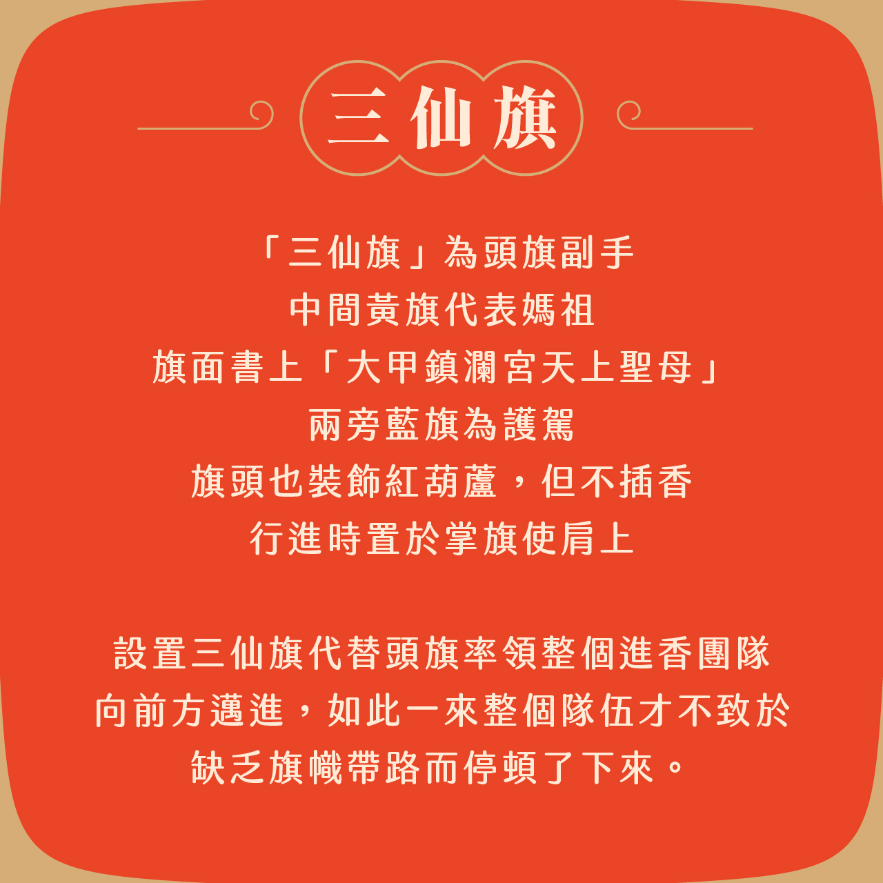 「三仙旗」為頭旗副手,任務為代替頭旗率領整個進香團隊