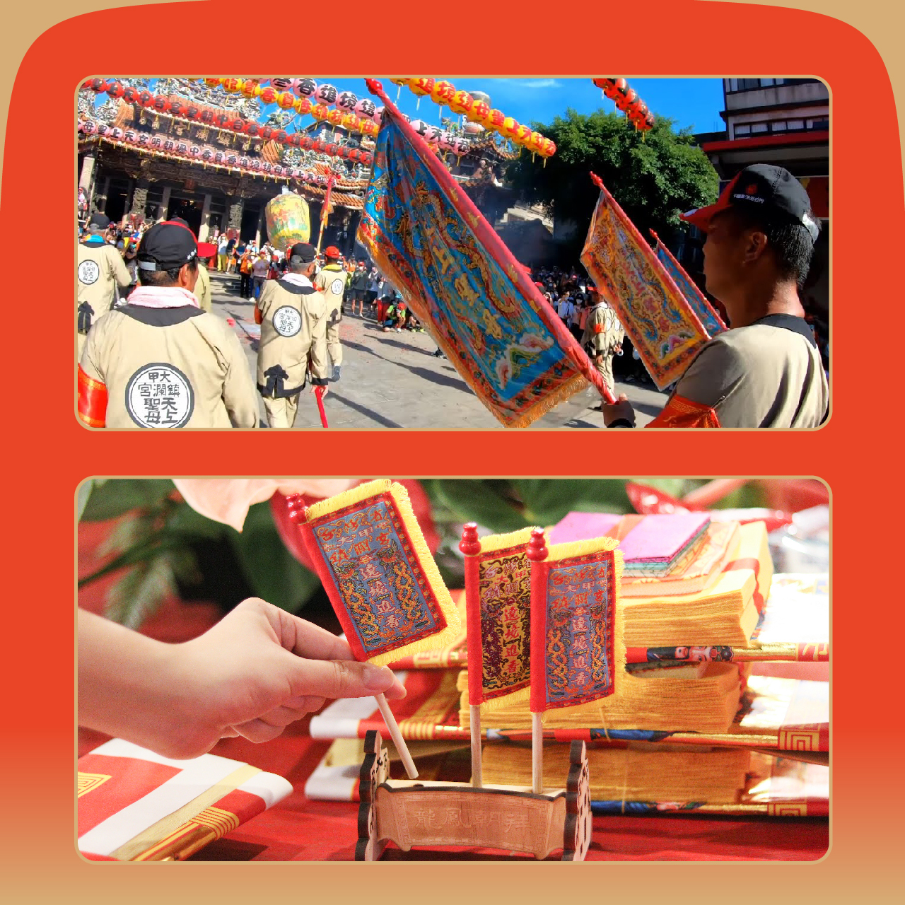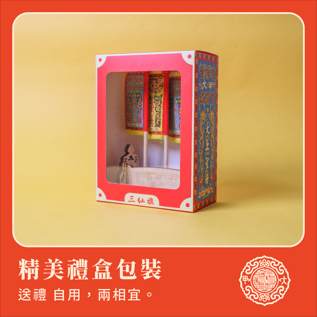 迷你三仙旗四件組,經過大甲媽過爐加持,讓您轉運吉祥!