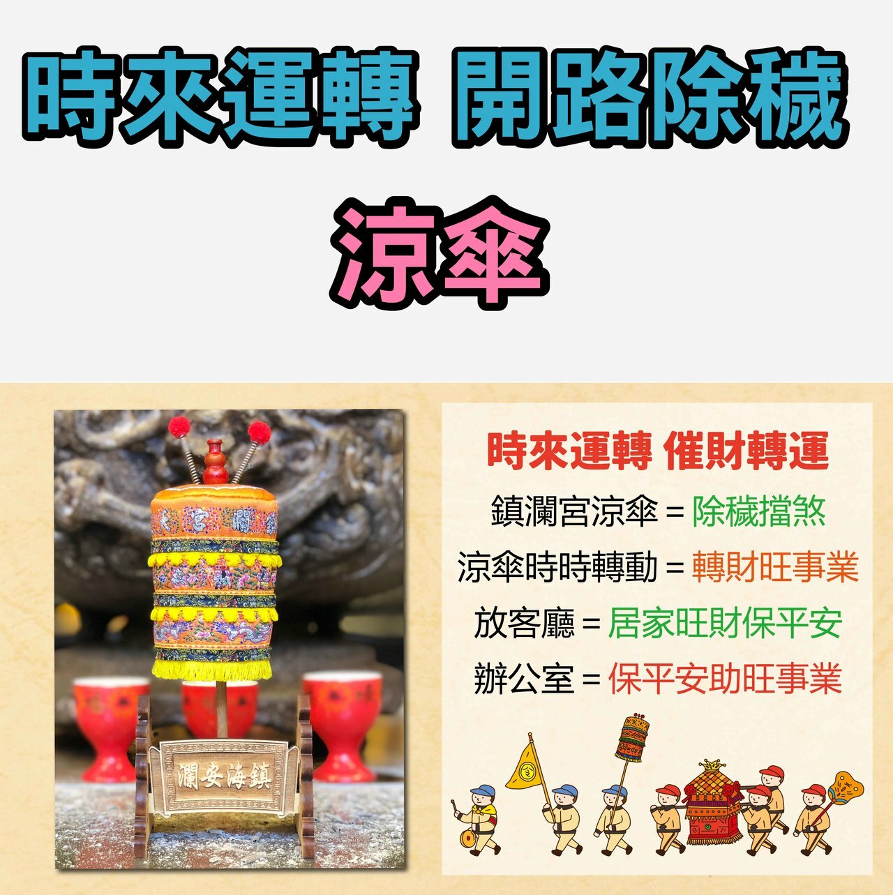 涼傘古稱:「華蓋」,有開路除穢、指引光明,時來運轉之喻意