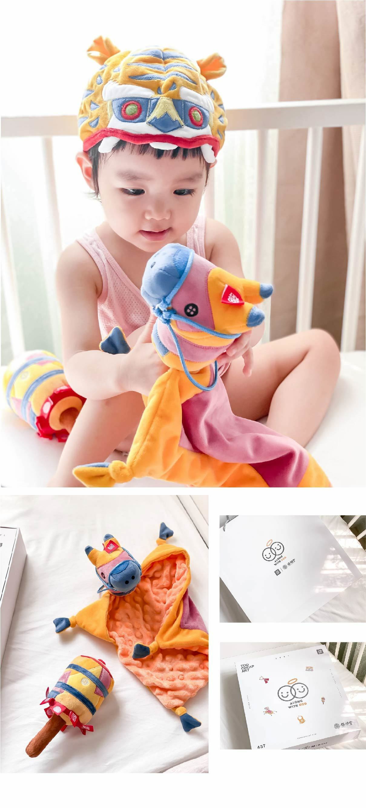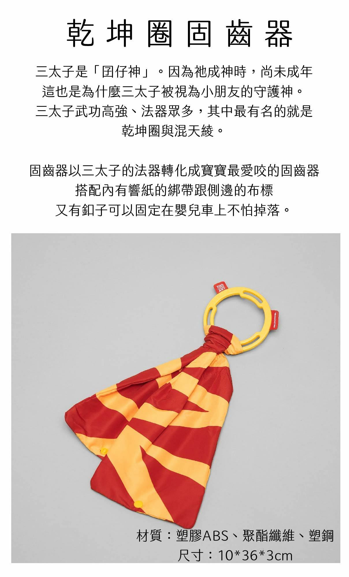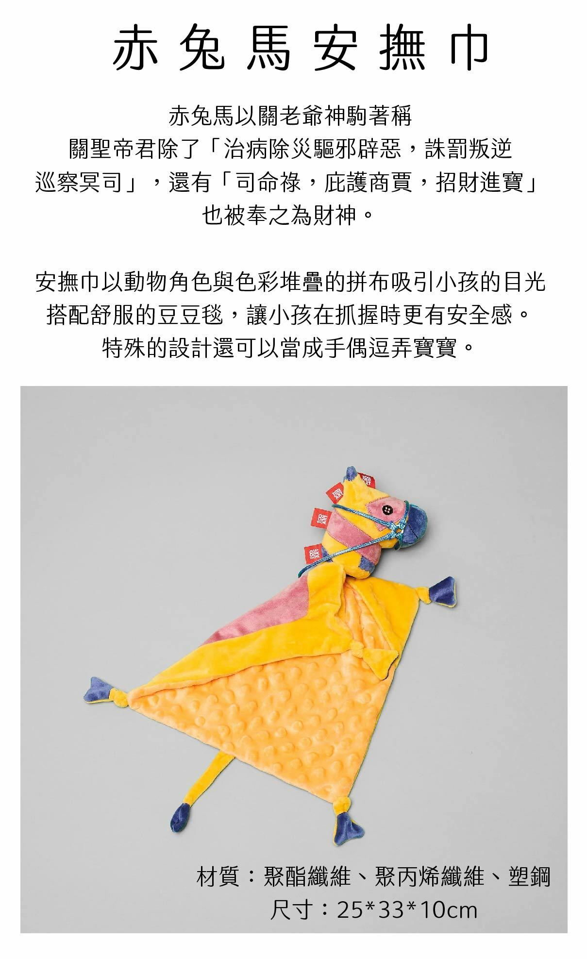 ・商品一套內含:娘傘搖鈴*1+赤兔馬安撫巾*1+虎爺帽*1+乾坤圈固齒器*1+聚寶盆飯兜*1+燙金信封卡片*1</br>