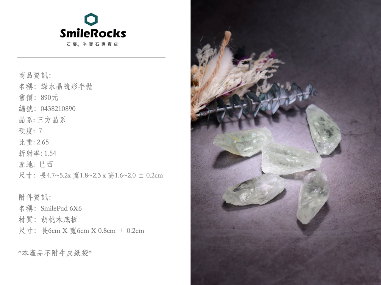 【石麥SmileRocks】綠水晶半拋原礦