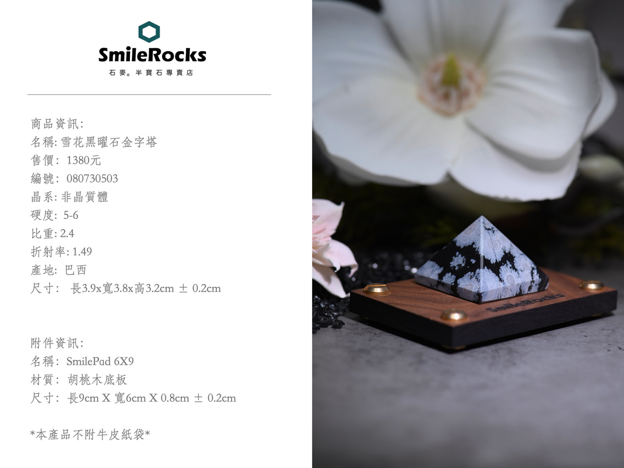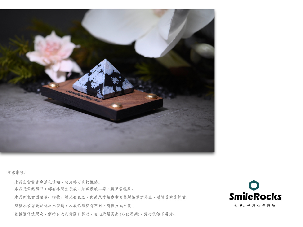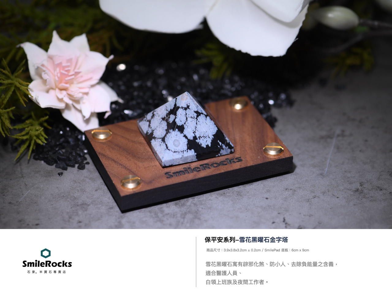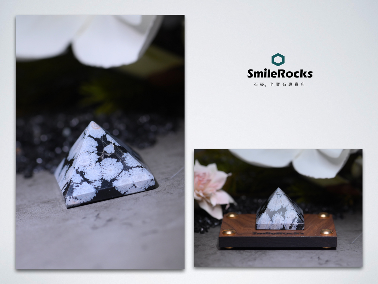 【石麥SmileRocks】雪花黑曜石金字塔