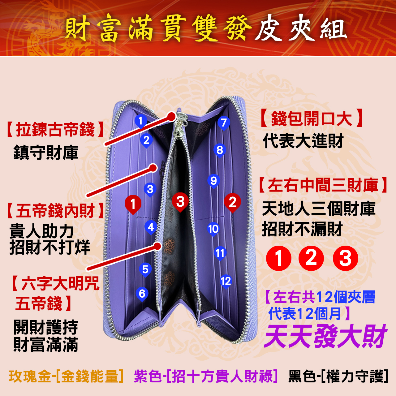 【海陽精品】財富滿貫雙發皮夾組(女夾金色+萬用包金色+男夾米灰色) (廠商直出)