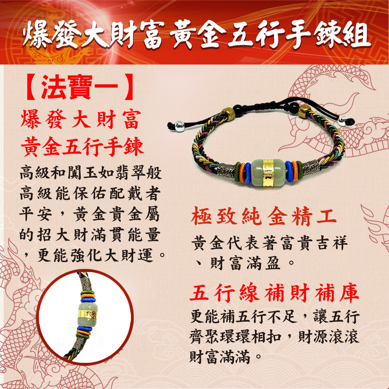【海陽精品】爆發大財富黃金五行手鍊組 (廠商直出、不參加免運及滿額贈優惠)