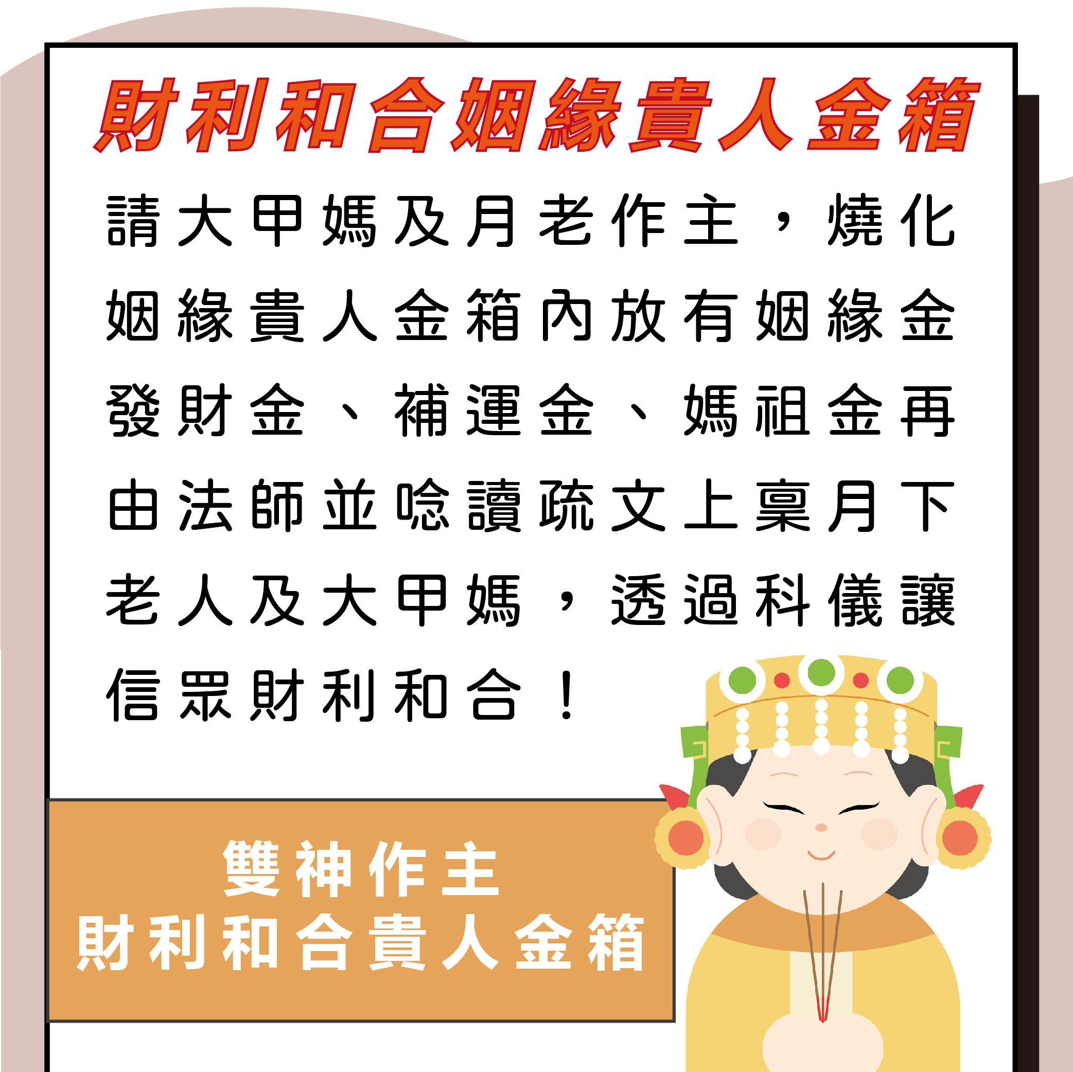 【月老及大甲媽加持】助信眾財利和合
