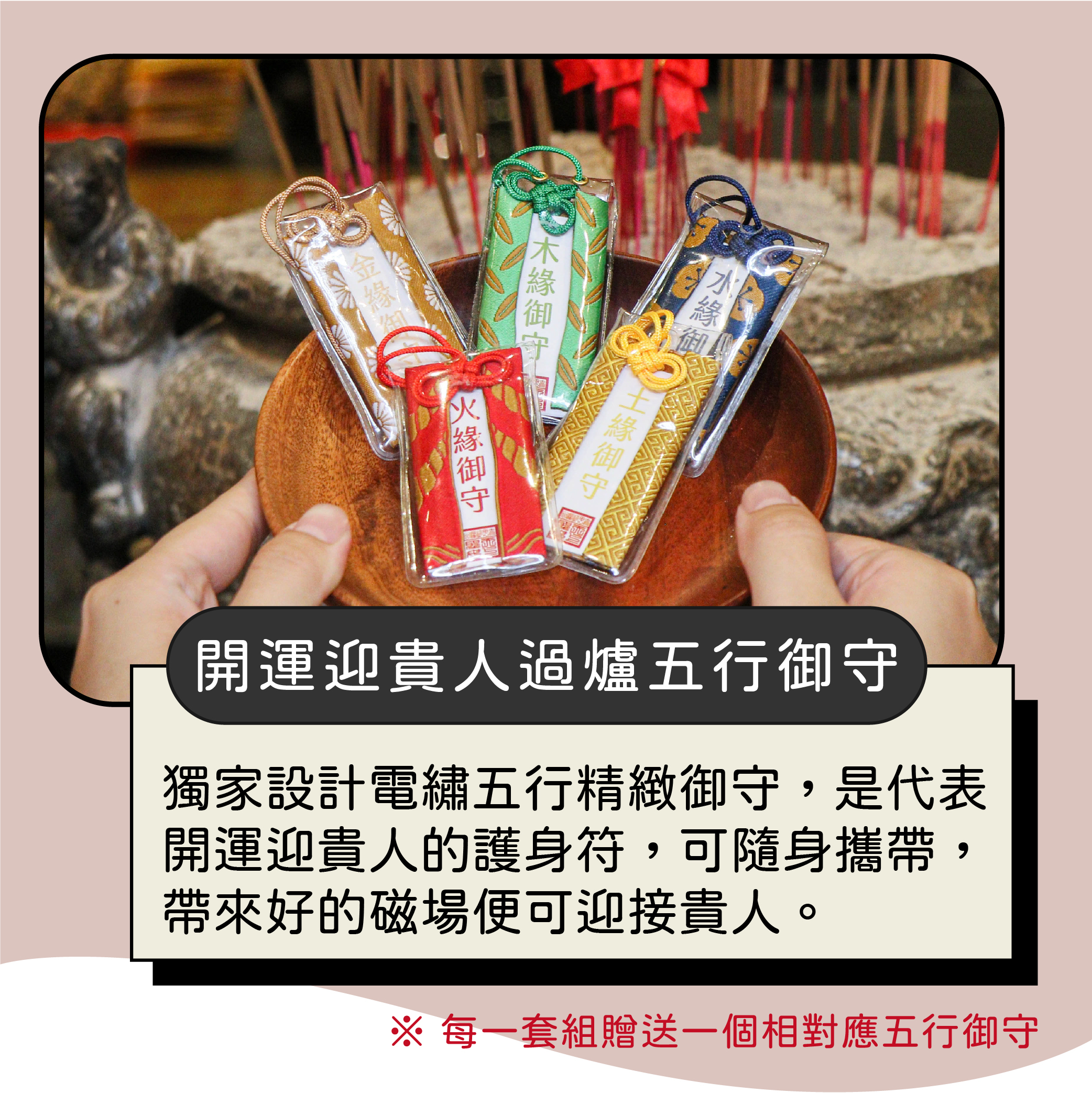 4.開光過爐加持聖物-迎貴人五行御守(款式為選擇的科儀規格)