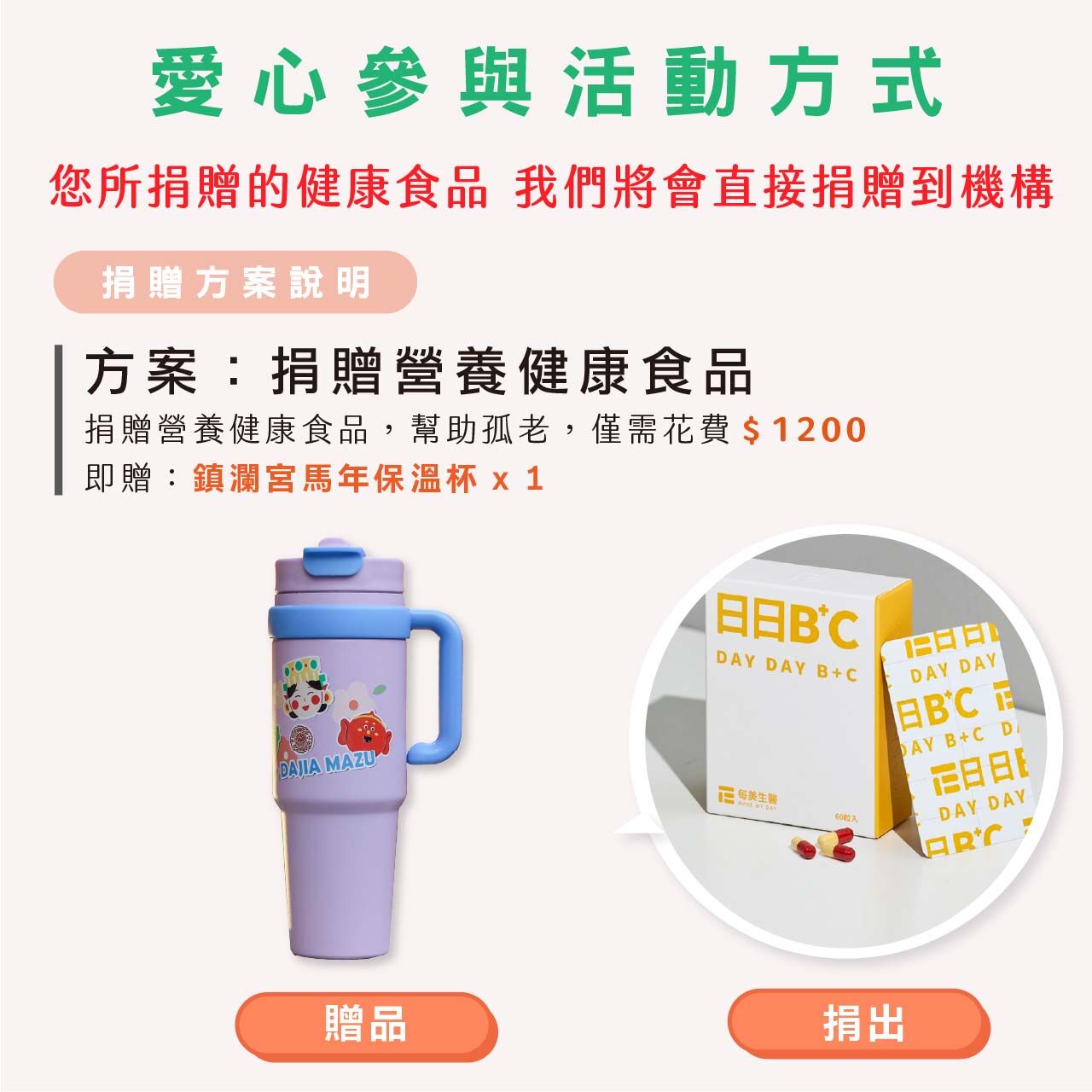 每捐一份保健食品,您將會收到一個《超限量-鎮瀾宮推出1000ml保溫瓶》
